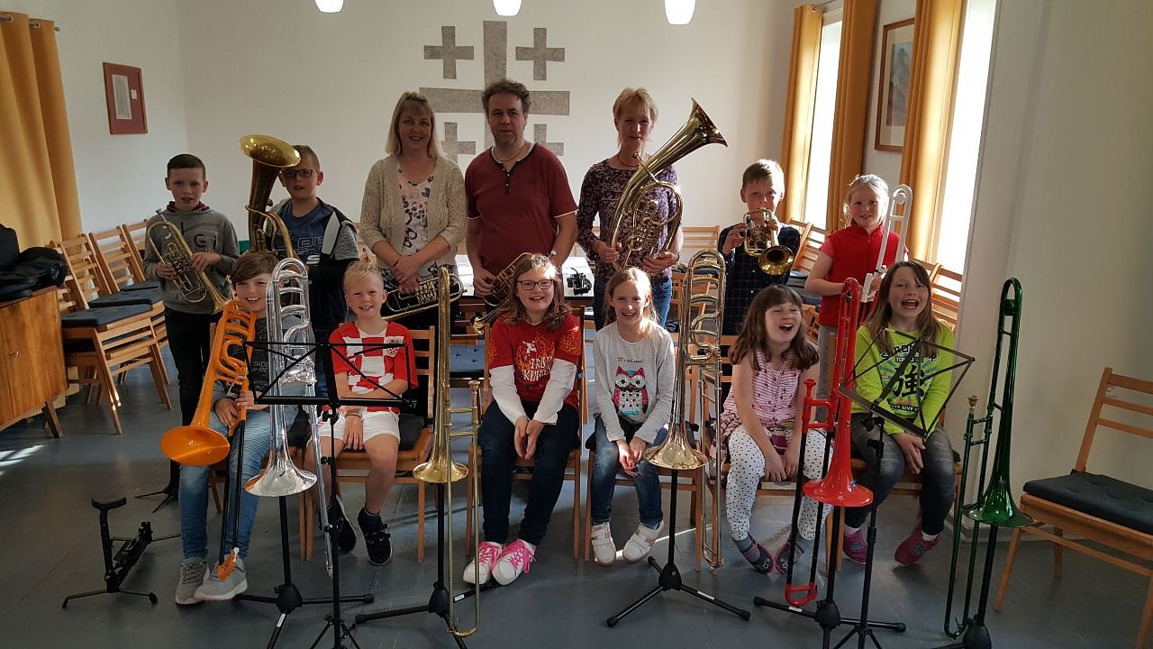 Unser Bläsernachwuchs ist bunt zusammengewürfelt aus den Orten Bischofferode, Großbodungen, Hauröden, Kraja und Trebra. 7 Anfänger haben sich für Unterricht an der Posaune, 4 an der Trompete und 2 am Tenorhorn entschieden.