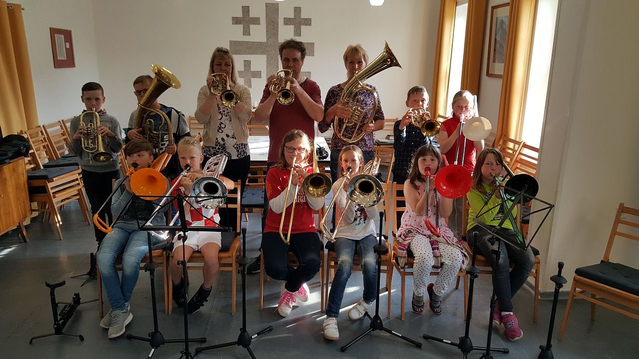 Wer während der Schulzeit donnerstags ab 18 Uhr zufällig am Gemeindehaus vorbeikommt, kann, wenn er Glück hat, die fröhlich motivierten Töne unserer Jungbläser hören.