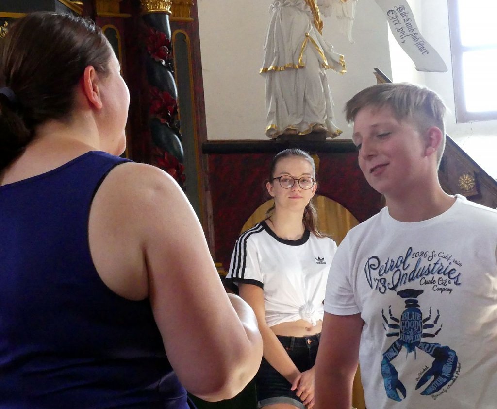 Und auch im Anspiel waren Jugendliche in Aktion - ein Mädchen sollte aus der Klassengemeinschaft ausgeschlossen werden, weil es neu war in der Klasse und irgendwie anders. Doch eine Schülerin setzte sich für sie ein und bald kehrte wieder Frieden ein.