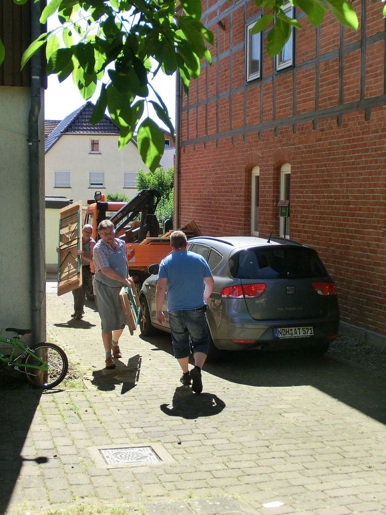 Nebenan wurde in einer Zentrifuge Butter hergestellt. Bürgermeister Jürgen Vopel war mit vollem Einsatz dabei. Er hatte auch die Idee zu dieser Veranstaltung, denn er wusste von dem Lehmbackofen auf dem Pfarrhof. So alt, wie von vielen angenommen, ist er allerdings nicht. Die Kinder der Kirchengemeinde hatten ihn unter Anleitung von Göran Müller vor etwa 17 Jahren gebaut.