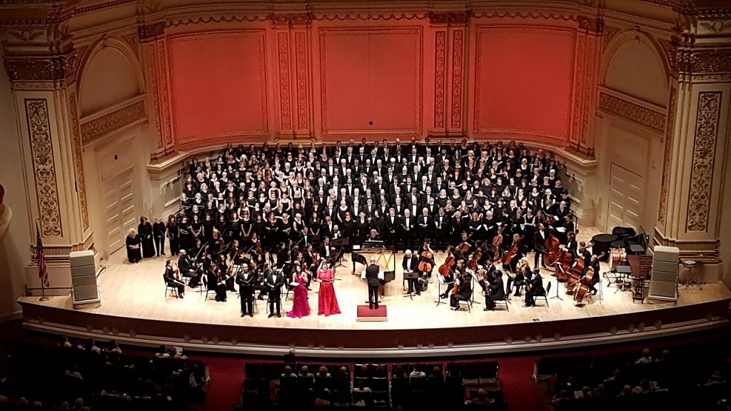 letzten Feinheiten geprobt und gefestigt wurden, bevor dann am Sonntag morgen die Generalprobe in der ehrwürdigen Carnegie Hall bevorstand. Durch ein Labyrinth hinter demPodium geleitet stand dann die Nordhäuser Kantorei erstmals in ihrerGeschichte auf der Bühne, auf der schon Größen der Musikgeschichte von Klassik bis Pop Konzerte gegeben haben. Welch ein erhebendes Gefühl!