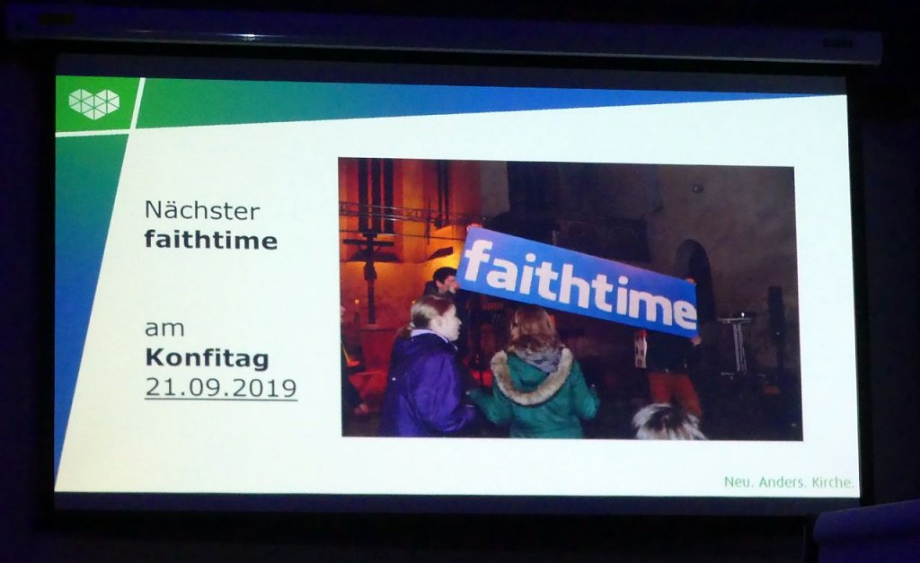So wurden die faithtime-Gottesdienstbesucher am Samstag in der Herzschlag Jugendkirche auf der Leinwand begrüßt. Die Kirche war gut gefüllt, neben den Jugendlichen hatten sich eine ganze Menge Mitglieder des Kreiskirchenrates und Wegbegleiter auf den Weg gemacht.
