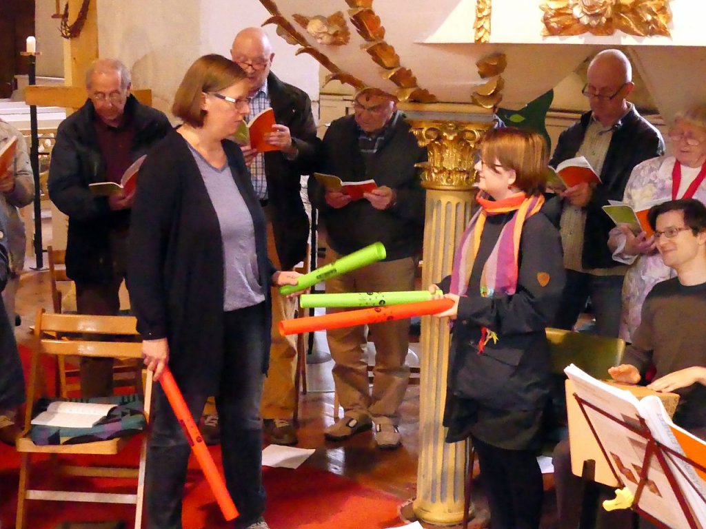 Ein vielstimmiger lauter Ton aus 20 Blasinstrumenten und herzlicher Applaus von weit über 70 Sängerinnen und Sängern schallte am Samstagnachmittag, 28.9., durch St. Marien in Bleicherode. Die Begeisterung war förmlich körperlich spürbar. Sie alle hatten gerade den 1. Kreis-Chor-Tag erlebt. Vom Vormittag an hatten Sangesfreudige aus dem ganzen Kirchenkreis gemeinsam ihren Beitrag zur Abschlussandacht, die sie mit Superintendent Andreas Schwarze feierten, einstudiert. In zwei Gruppen widmeten sie sich der klassischen Musik mit Kantorin Viola Kremzow und dem Gospel mit Kantorin Christine Heimrich. Nach einiger Zeit wurde getauscht, so dass am Ende jeder alles einmal intensiv geprobt hatte. Das Besondere an diesem Tag war die große Gemeinschaft, das wurde mir immer wieder bestätigt, erzählt Viola Kremzow. Es hatten sich nicht nur regelmäßige Chorsänger eingefunden, sondern auch Menschen, die gern einmal einen Tag lang nur dem Gesang widmen wollten. Das Beisammensein mit Menschen, die alle Freude am Singen haben ist einfach schön, das verbindet uns. Wir kommen gern wieder, erzählten Viele beim Abschied. Der große Applaus galt den Organisatorinnen Christine Heimrich und Viola Kremzow sowie den beteiligten Kantorinnen Miriam Leha und Margarita Yeromina und Kantor Michael Kremzow, der mit dem Posaunenchor probte. Ganz herzlich bedankte sich die Teilnehmer aber auch bei Kathrin Schwarze und Vikar Florian Zobel, die kurz entschlossen den Küchendienst übernommen hatten. Eines war so gelungener Tag, dass mehrheitlich schon um Wiederholung gebeten wurde.