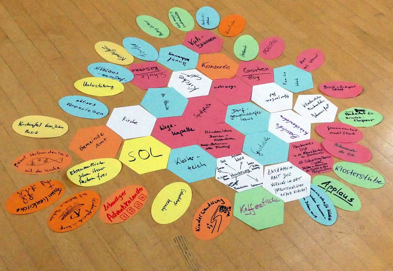 In Bleicherode trafen sich rund 30 Mitdenker: der Superintendent, eine Pfarrerin und drei Pfarrer, eine Gemeindepädagogin, viele Gemeindekirchenräte, frische Kandidaten für die anstehende Gemeindekirchenratswahl, der Bürgermeister von Buhla Rüdiger Wetterau und interessierte Gemeindemitglieder. Der Abend begann mit dem Sammeln von schönen Erlebnissen mit Kirche im vergangenen Jahr. Da wurde fröhlich von besonderen Taufen, einem herzerwärmenden Treffen mit Christen im Urlaub, einer Wanderung mit Kindern, einer gemütlichen Kaffeetafel, Konzerten oder dem guten Miteinander von politischer und Kirchengemeinde sowie Vereinen berichtet. Erstaunlicherweise fanden die meisten Erlebnisse mit Kirche nicht in Gotteshäusern statt. Wiesen, Brunnen, Dorfgemeinschaftshäuser, Festzelte, in der Familie, an einem Urlaubsort – alles Orte an denen Kirche spür- und erlebbar wurde. In Stöckey wurde bereits die gleiche für Viele überraschende Fülle von Erlebnissen mit Kirche außerhalb der Kirche aufgelistet, berichtet Superintendent Andreas Schwarze, der an beiden Werkstätten teilnahm.