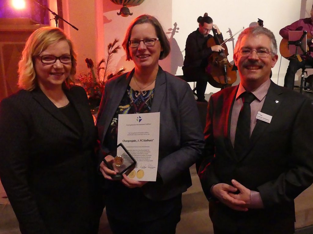 Frauenchor-Projekt wurde von Laudatorin Katja Mitteldorf vorgestellt. Eine Aufgabe, die für sie eine Premiere bedeutete, sprach sie doch erstmals in einer Kirche. Und das nicht als MdL oder Parteimitglied, sondern als Präsidentin des Thüringer Chorverbandes e.V.