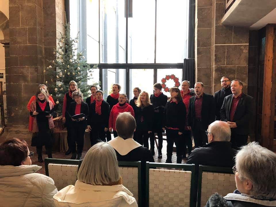 KARIBU singt wieder. Heute im Gottesdienst in der Frauenbergkirche in Nordhausen trat der Gospelchor des Kirchenkreises Südharz zum ersten mal seit dem Wechsel in der Chorleitung öffentlich auf. Brian Radins leitet den Chor seit Oktober 2019. Nun ist ein sehr hörenswertes und schönes Programm entstanden. Wir freuen uns schon auf weitere Auftritte an ganz unterschiedlichen Orten. Der Chor freut sich über Sängerinnen und Sänger. Die Proben finden freitags in Nordhausen, Altendorfer Pfarrhaus statt. Die nächste Probe ist am 31.1., um 19.00 Uhr - herzliche Einladung!