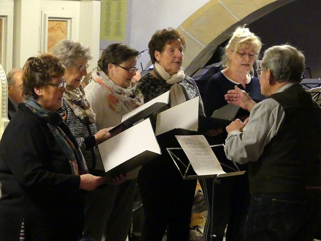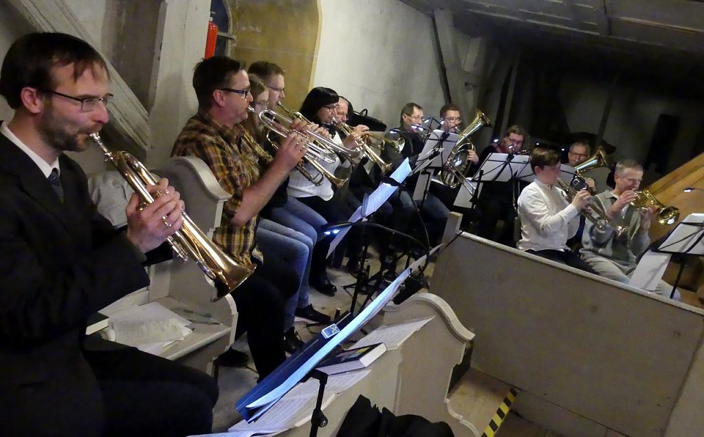 Immer wieder schön ist die aufwendige musikalische Gestaltung des Gottesdienstes. Sie stand unter der Gesamtleitung von Kreiskantorin Margarita Yeromina, die zwischen all den Notenständern immer wieder ein Höckerchen erklomm, um alle dirigieren zu können.