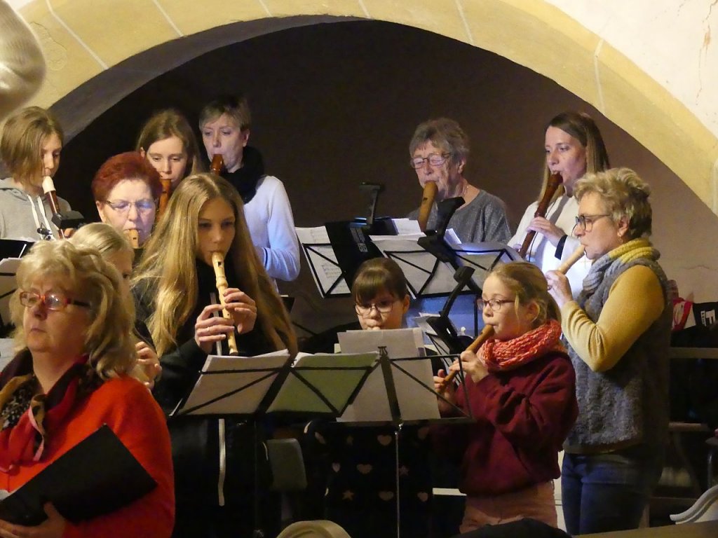 Alle gemeinsam machten den Abend zu einem musikalischen Ereignis. Jede Strophe eines Liedes wurde unterschiedlich begleitet – Flöten, Chor, Bläser, Orgel. Ein kleines besinnliches Feuerwerk wurde da entfacht.