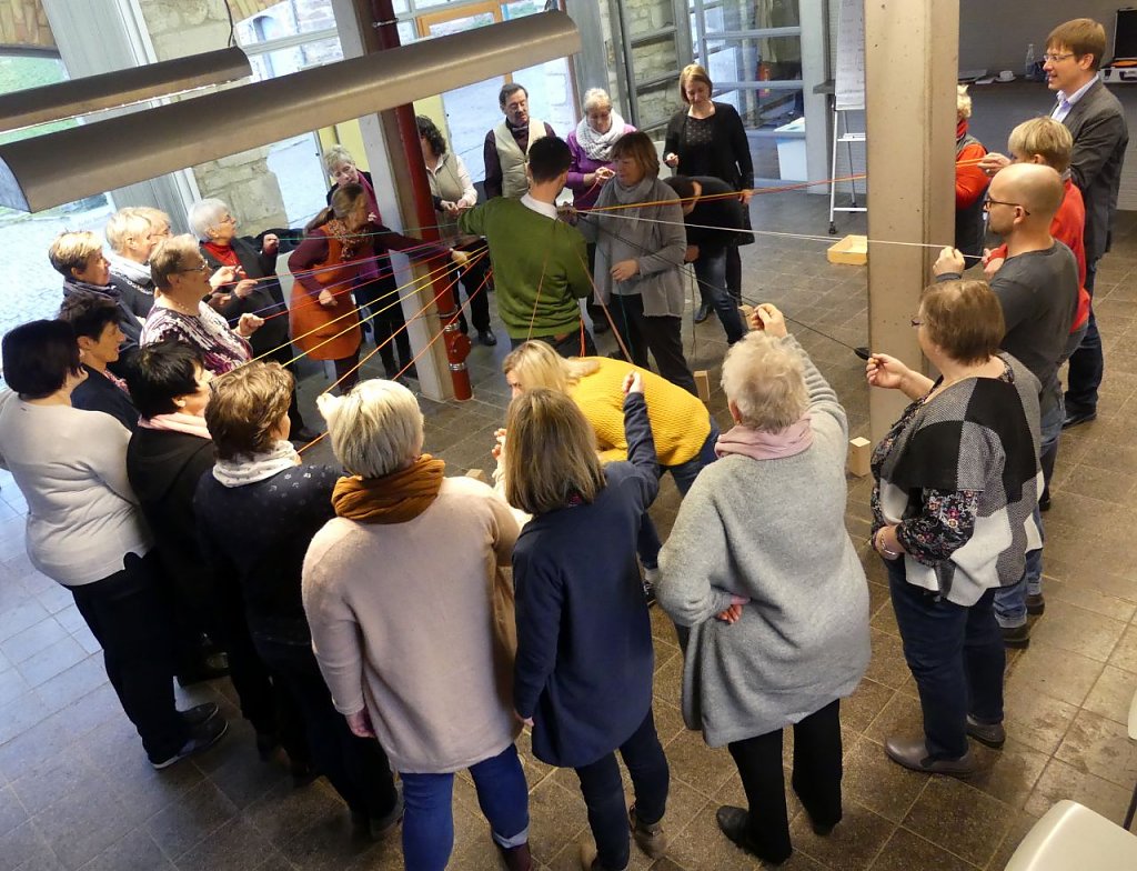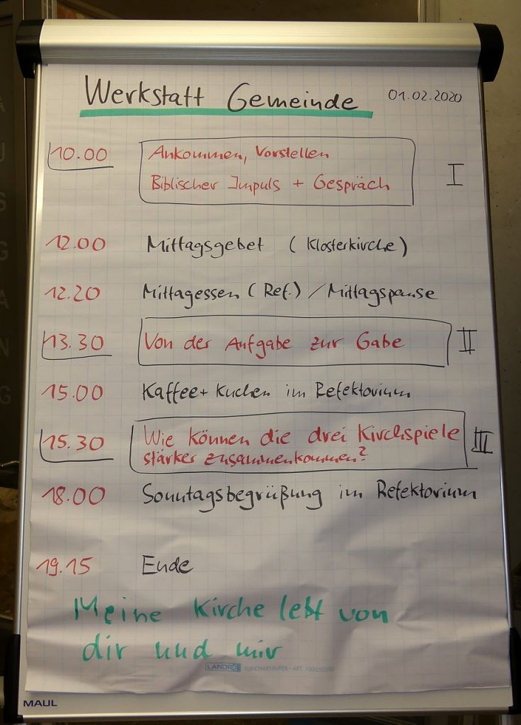 Die Moderation des Tages durch Pfarrer Dr. Schödl war für uns sehr wohltuend. Mit spannenden Selbst- und Fremdeinschätzungen unserer Gaben lernten wir uns durch ihn noch einmal ein wenig neu kennen. Ein lustiges Spiel zeigte uns, was wir gemeinsam schaffen und dass wir uns aufeinander verlassen können. Seine beharrliche Moderation führte uns hin zu konkreten Ergebnissen. Fröhlich und gestärkt verließen wir am Abend das Kloster. Und eine unserer Gemeindekirchenratsvorsitzenden, Evelyn Lübbecke, fasste den Tag so zusammen: "Wer nicht dabei war, der hat definitiv etwas verpasst!"