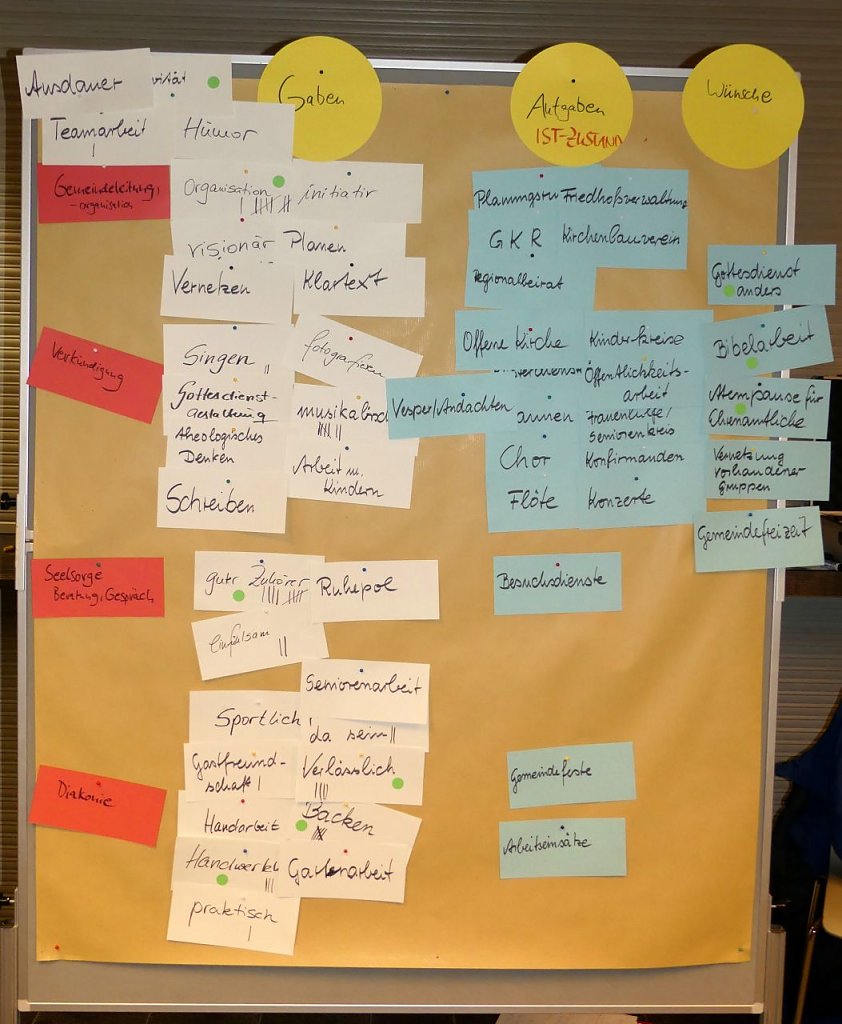 Viele neue Gesichter waren nach der GKR-Wahl zu entdecken - um uns näher kennenzulernen und eine Gemeinschaft zu werden, trafen wir uns in Kloster Volkenroda. Unter der Leitung von Pfarrer Dr. Albrecht Schödl gingen wir jedoch noch einen Schritt weiter. Nach der Entdeckung unserer Gaben wechselten wir zu unseren Aufgaben. Was deckt sich? Wo liegen unsere Schwerpunkte?