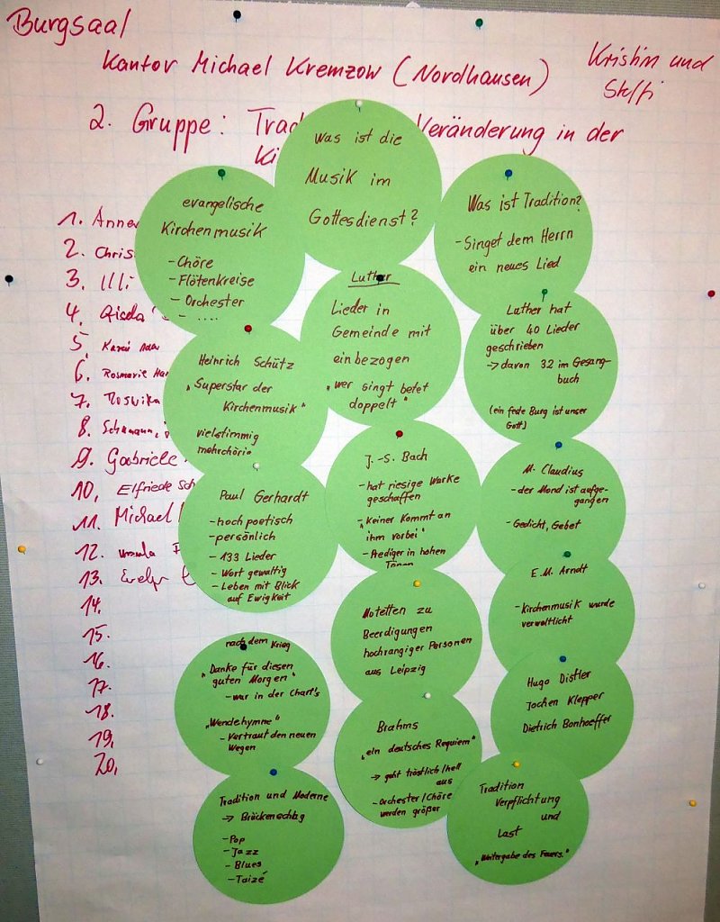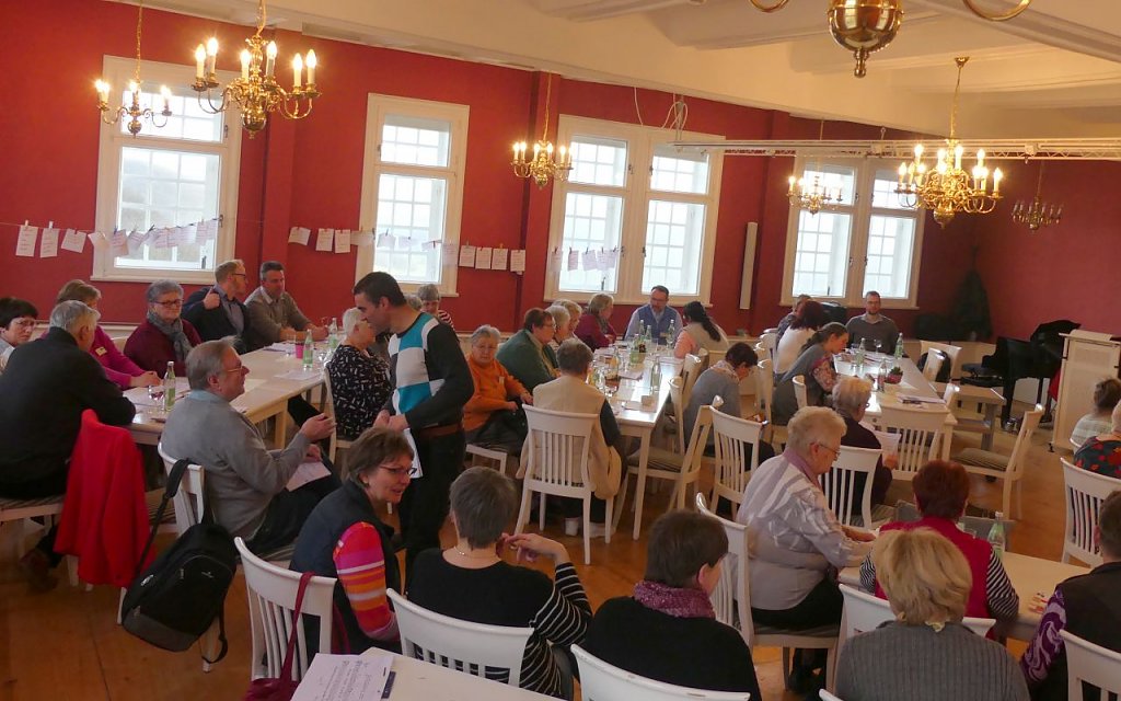 An diesem Tag gab es drei Workshops, die alle von ihren Leitern sehr aufwendig vorbereitet waren. Besonders für die praktische Umsetzung war das Thema von Stefan Domann geeignet. Am Beispiel der Kirche in Wülfingerode zeigte er, wie man Kirche und Dorf zu einer Einheit werden lassen kann. Und was man so alles zusammen erreicht. Das neueste Projekt "Bienenkirche" war dabei nur eines von vielen.