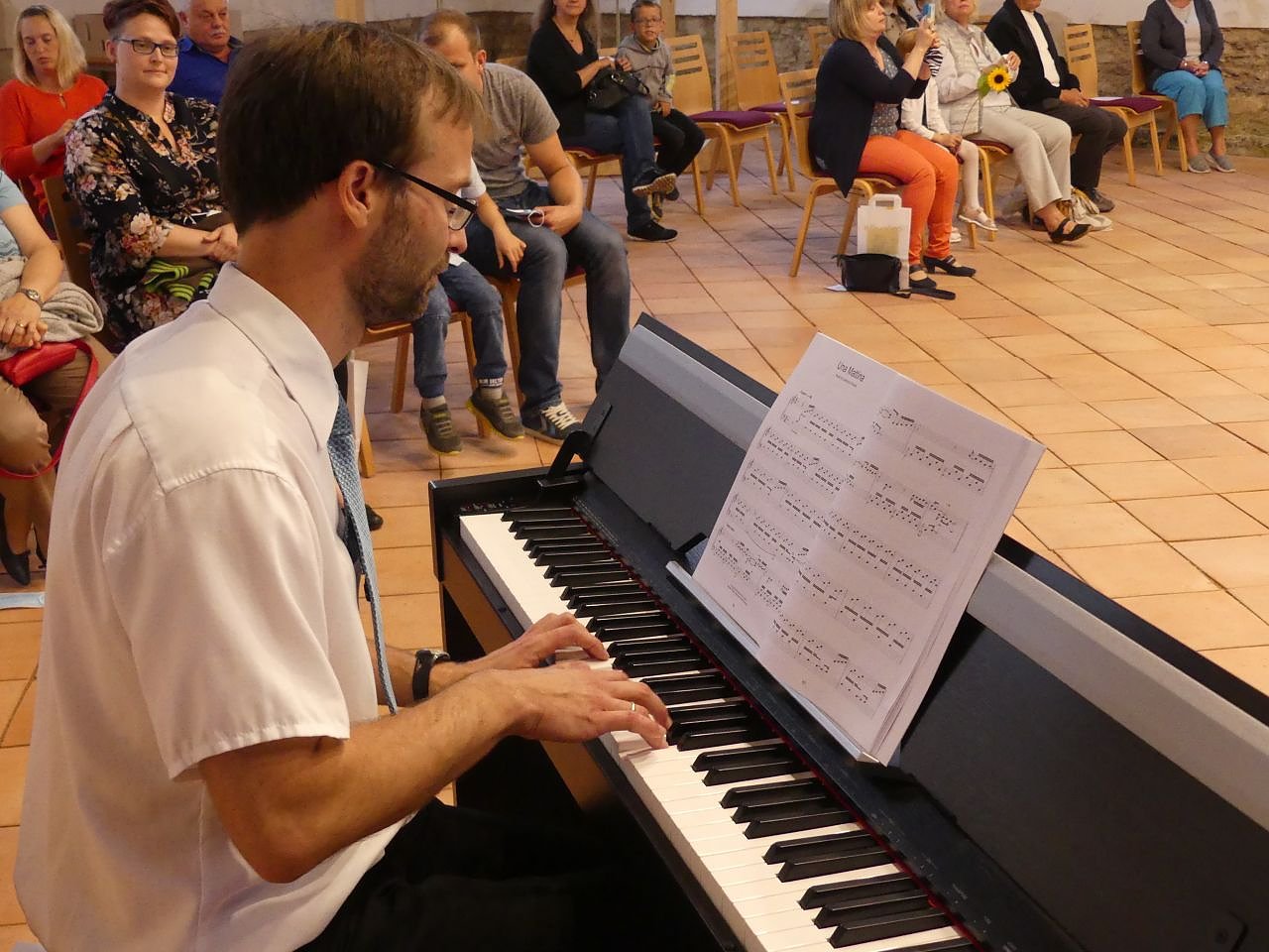 Pfarrer Michael Steinke spielte E-Piano und Gitarre für die Familien (Foto: R. Englert)