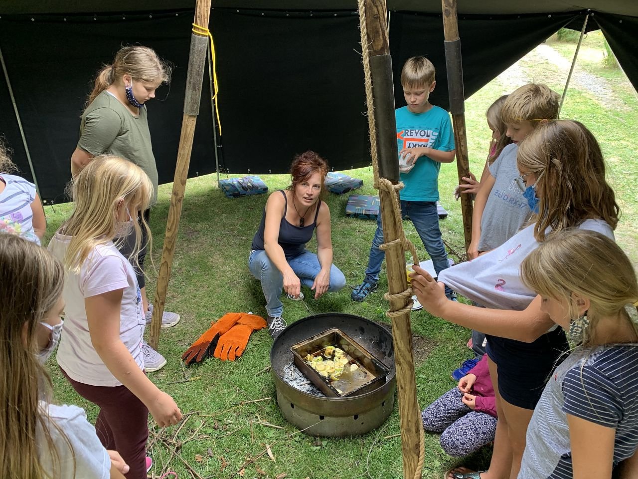 anderen. Bevor jedoch alle wieder nach Hause gingen, gab es leckere Kürbis-Pancakes welche über dem Lagerfeuer gebacken wurden.