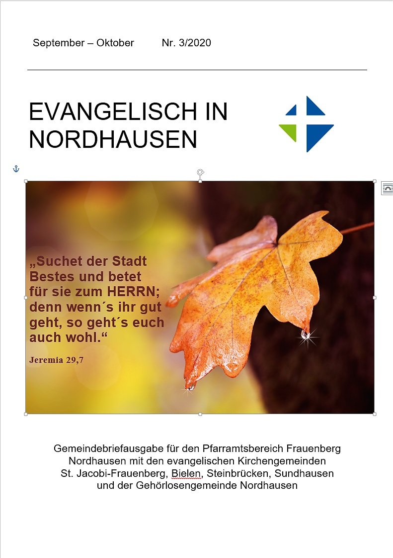 Für alle Online-Leser und zum Herunterladen, hier die Gemeindebriefausgabe für den Pfarramtsbereich Frauenberg Nordhausen
