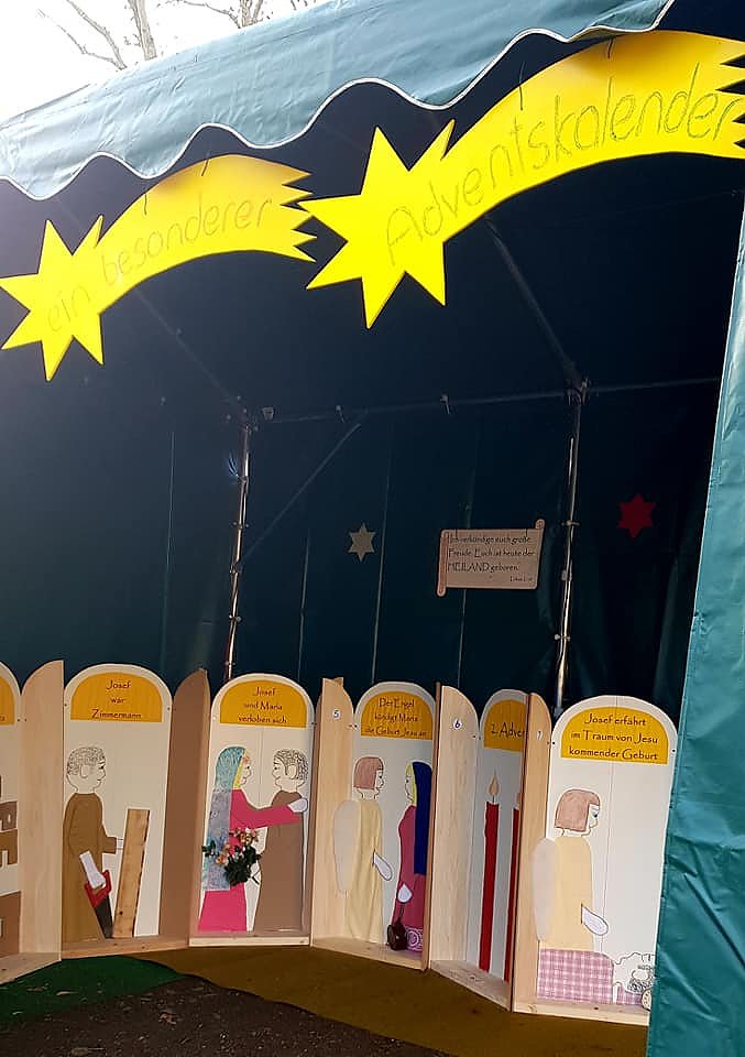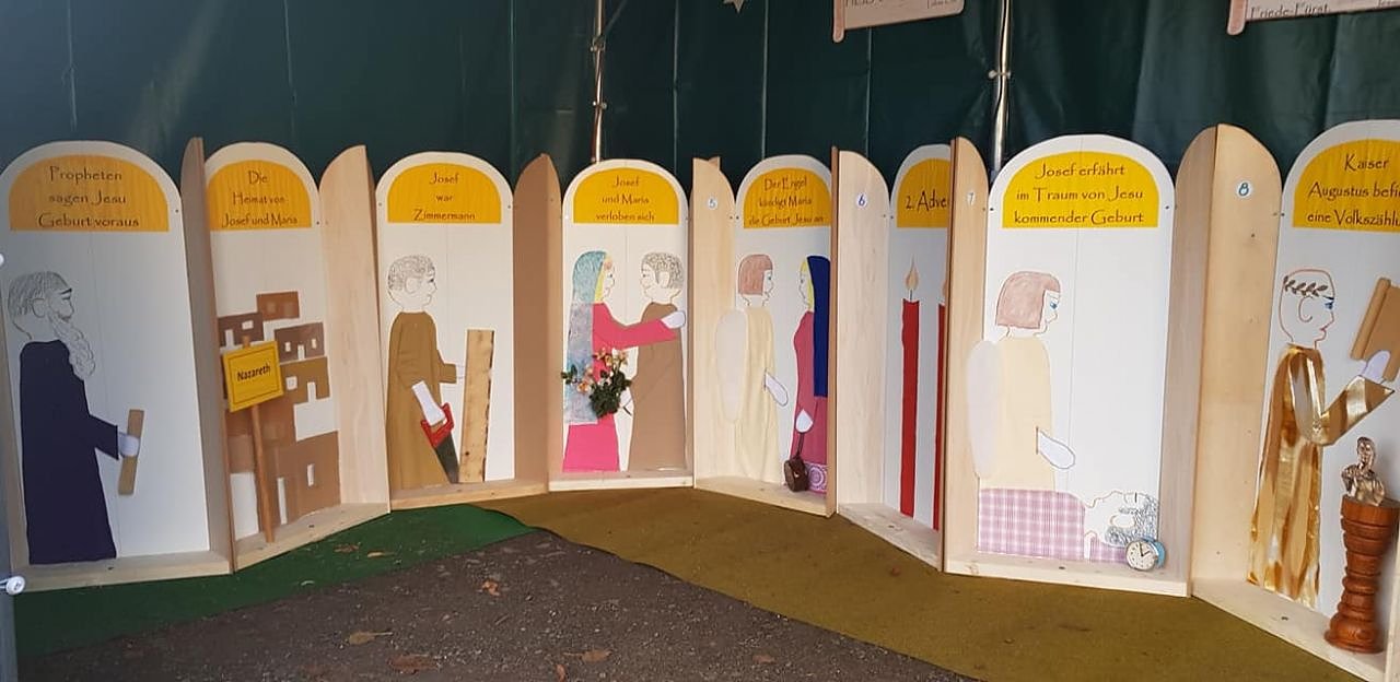 So bleibt der Kirchplatz trotz fehlendem Adventsmarkt kein leerer Platz. Und wenn die Menschen nur bedingt in die Kirche kommen können, dann "erzählen" wir ihnen eben vor der Kirche von Weihnachten, lädt die Gemeinde ein.