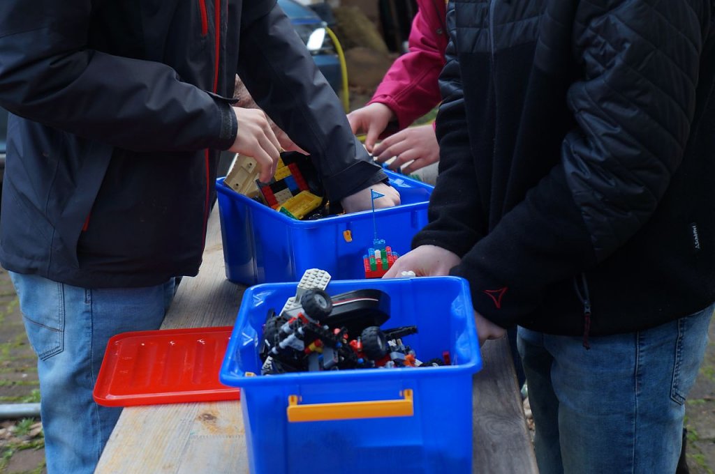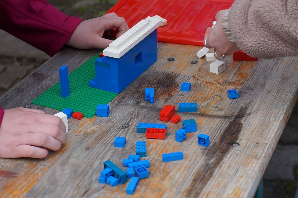 Bei der Vorbereitung haben die Jugendlichen sich mit einer biblischen Geschichte beschäftigt und wollen sie mit Lego-Figuren für die Gemeinde darstellen.