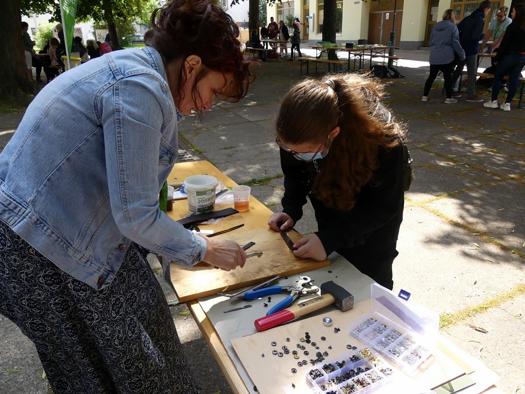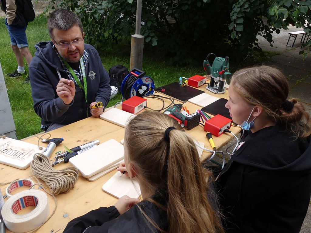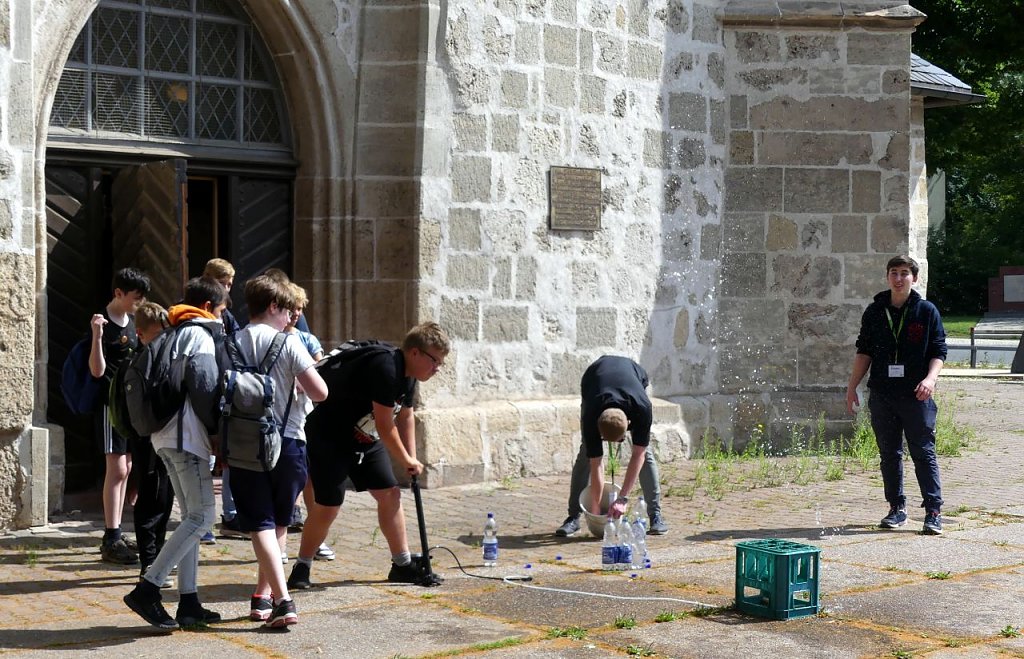 Der Jubel in der Blasii-Kirche in Nordhausen ist am Ende des Kirchenentdeckertages wieder groß. Gut 50 Kinder aus 3 Schulklassen haben sich mit ihren Lehrerinnen zu Fuß auf den Weg gemacht. Sie kommen aus der Regelschule Am Förstemannweg sowie den Förderzentren St. Martin und Pestalozzi. Es ist so schön, dass die Kinder dieses Mal wirklich alle Angebote ausprobieren können, freut sich eine Lehrerin. Sonst war es ja immer so voll, dass man Schlange stehen musste, ergänzt eine andere. Eine Betreuerin, die einen jungen Menschen im Rollstuhl schiebt, freut sich ganz besonders für ihre Schüler, dass auch sie immer Angebote finden, bei denen sie mit Begeisterung mitmachen können. Und die Begeisterung ist deutlich zu sehen. Nach einer kurzen Andacht mit Joshua Pettay, Marcus Bornschein und Marie Wand von der Jugendkirche geht es in die Workshops. Jede und jeder lernt dort auf verschiedenste Weise mindestens einen tollen Typen aus der Bibel kennen. 10 Mitarbeiter aus dem gemeindepädagogischen Dienst sowie Ehrenamtliche des Kinderkirchenladens und Mitarbeiter der Jugendkirche sind dafür im Einsatz. Sie sind es auch, die in diesem Jahr den Markt der Möglichkeiten gestalten. Da wird geduldig filigraner Schmuck kreiert, Holzschilder mit verschiedenen Werkzeugen bearbeitet, Kreuze gestaltet, auf kleinen Orgelpfeifen Melodien geflötet, Lederarmbänder geschnitten, mit Airbrushfarben gemalt, Speckstein gesägt, mit feinen Hölzchen imposante Schiffchen gebaut, mit gepolsterten Stöcken gekämpft und vor allem mit Volldampf Wasserraketen gestartet. Eine einfache Konstruktion aus wenig gefüllten Plastikwasserflaschen und einer Luftpumpe sorgt für großes Hallo bei Schülern und Lehrerinnen. Kaum jemand, der sich das entgehen lässt. Zum Abschied gibt es noch Armbänder für jede echt tolle Type, damit sie auch ja nicht vergessen, dass sie wirklich alle tolle Typen sind. Ein großes Dankeschön gilt den Johannitern, die mit 2 Fahrzeugen bereitstehen und geduldig alle Fragen beantworten sowie dem Weltladen für seine Gastfreundschaft, bedankt sich Ines Delert, die dieses Mal für die Organisation des Tages verantwortlich ist.