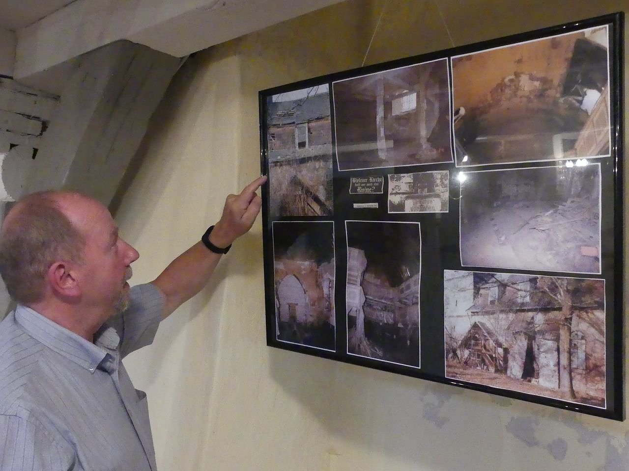 Jochen Bühling zeigt den Zustand der Kirche zu Beginn (Foto: R. Englert)