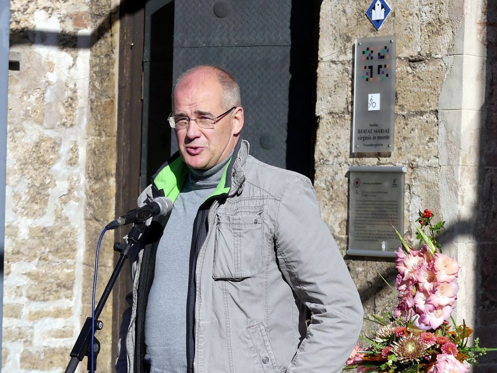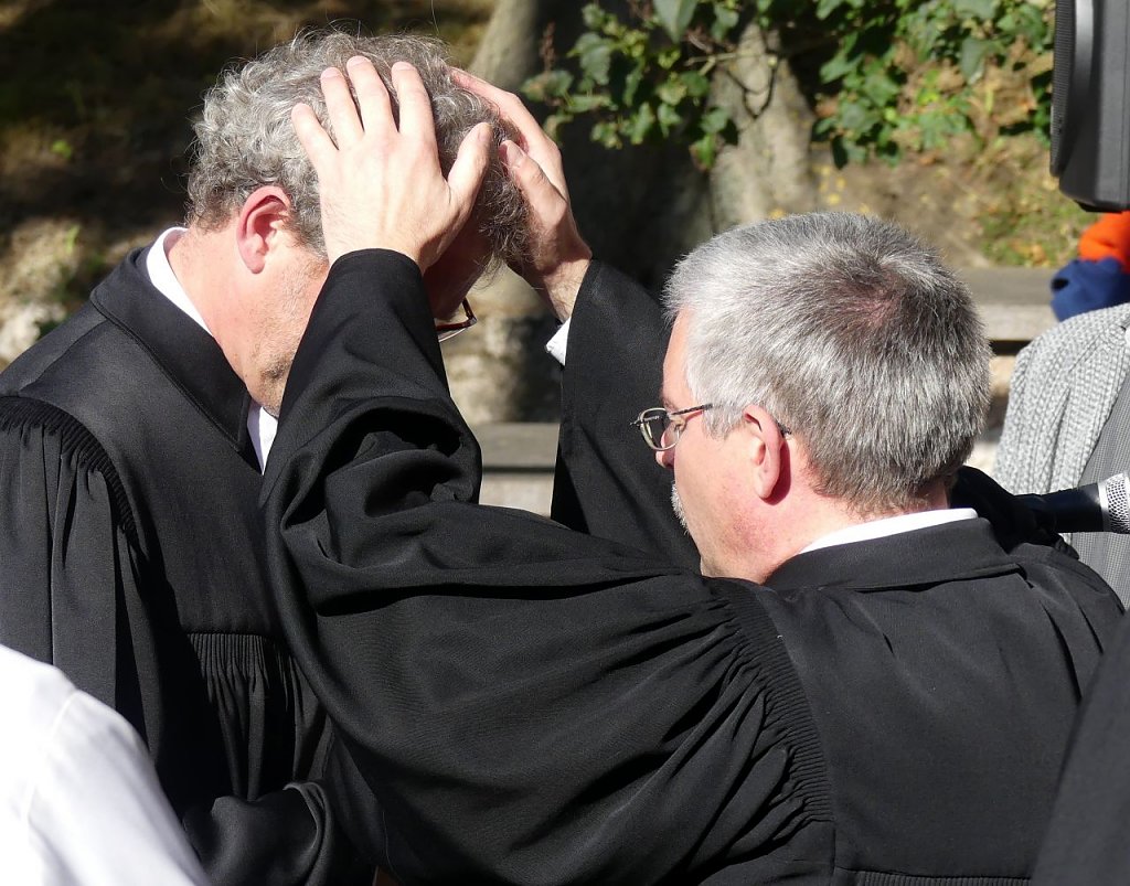 Der Himmel strahlt in südlichem Blau über der Frauenbergkirche und der Gemeinde, als Pfarrer Klemens Müller am Sonntag in seinen Dienst eingeführt wird. Sonnig sind auch die Gemüter - viel Dank ist zu hören für die nun vergangene Vakanzzeit, die man so gut miteinander gemeistert hat. Das Damoklesschwert der Vakanz, so betonen einige, sei in ein wunderbares Miteinander verkehrt worden. Fast scheint es schon schwer, einander wieder loszulassen.