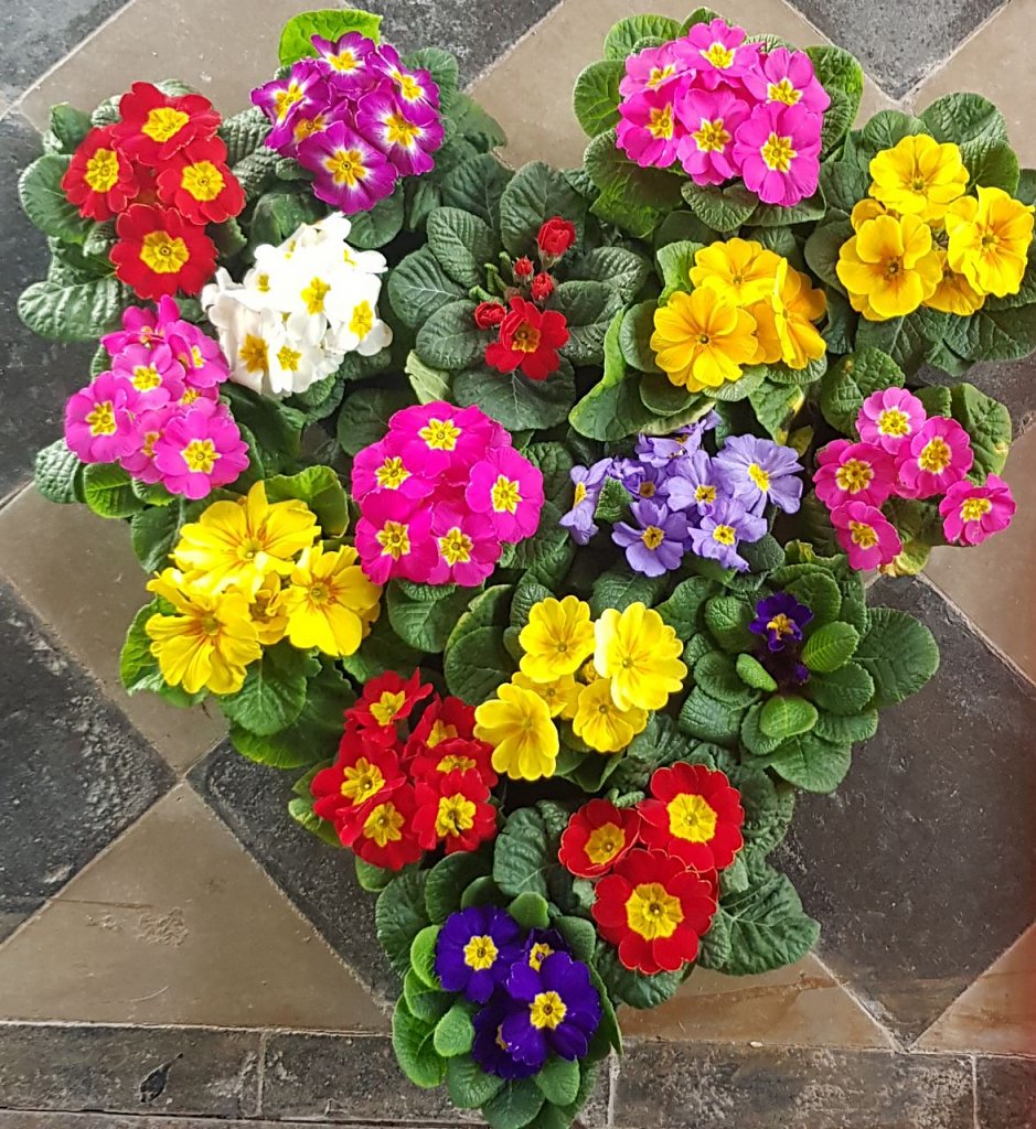 Die Primeltöpfchen im Altarraum haben mit Unterstützung der Gärtnerei KulturFloral Srocke aus Bleicherode ihren Weg in die Kirche gefunden. Regional ohne lange Transportwege und als längerwährende Erinnerung zum Einpflanzen.