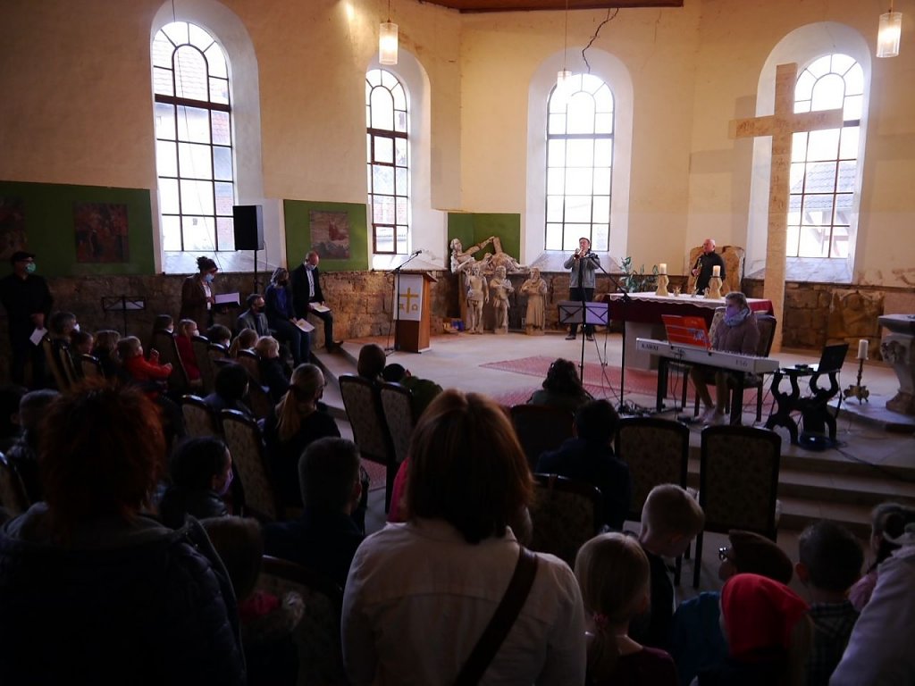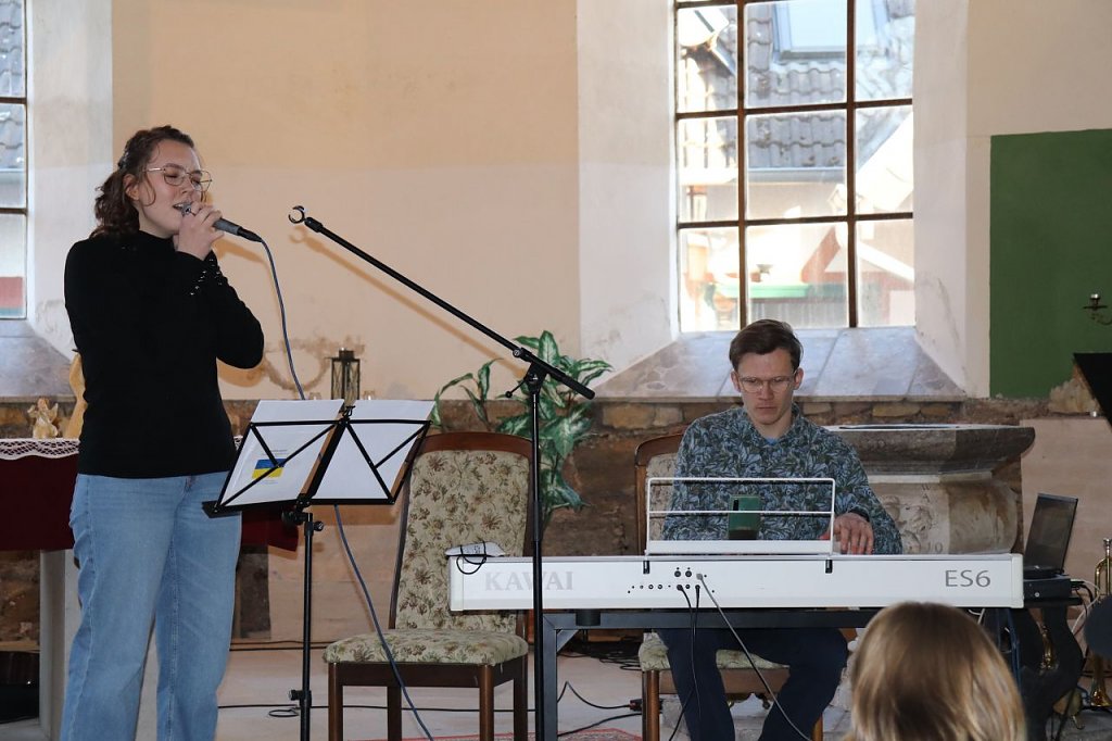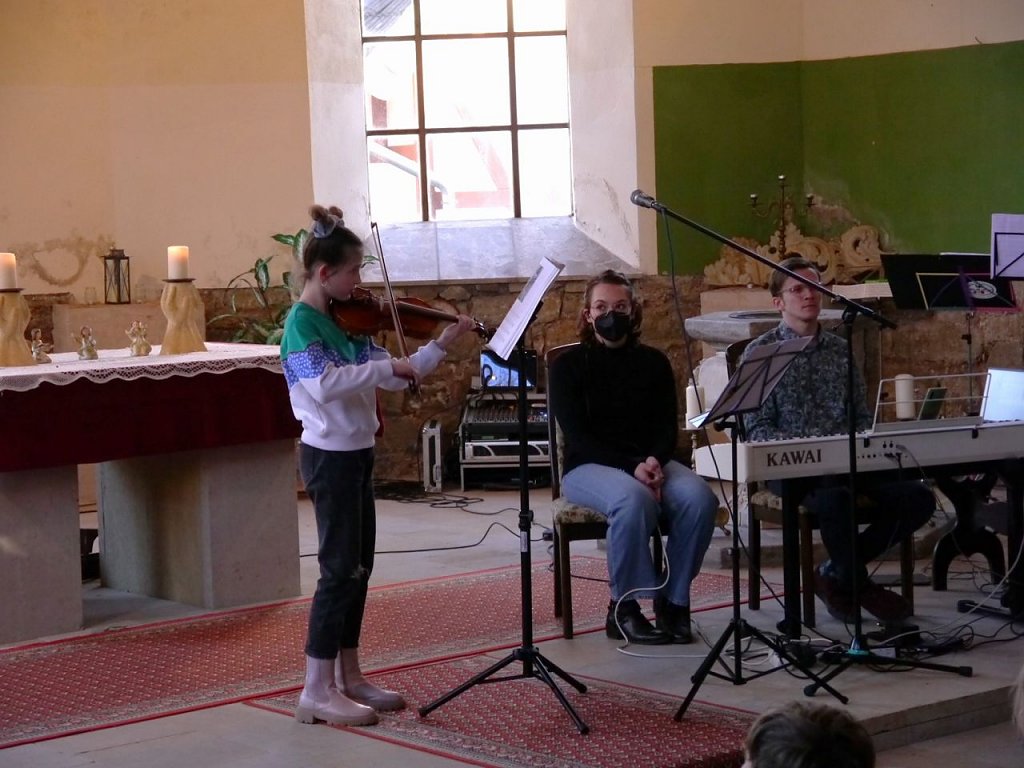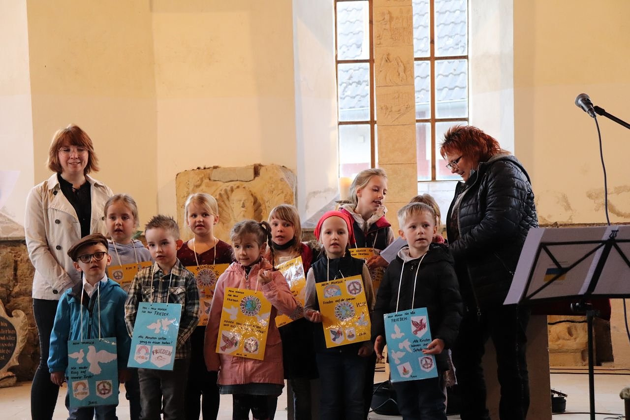 Nur 2 ½ Wochen liegen zwischen Idee und Konzert. Aber was wurde nicht alles organisiert, vorbereitet, geplant in dieser kurzen Zeit. Immer mehr Musikerinnen und Musiker springen auf, wollen sich beteiligen, wollen ihre Anteilnahme und Solidarität zeigen. Am Ende sind es nicht nur Kinder und Jugendliche, die musizieren, sondern Menschen aller Generationen. Die Stimmen der Kindergartenkinder der Kita Wolkramshausen, des spontan gegründeten Familienkirchenchors aus Bielen füllen den Raum ebenso, wie Trompeten und Posaunen, Klavier, Geige oder solistischer Gesang.