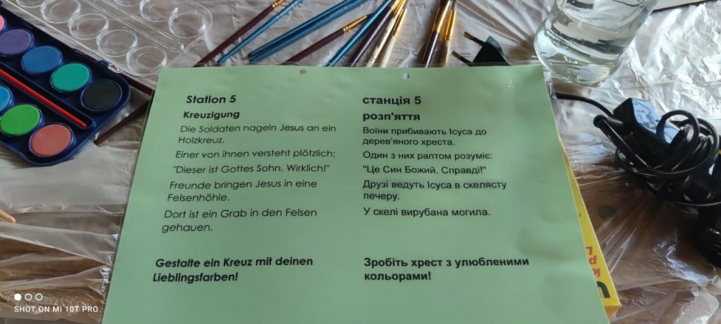 Nach 2 jähriger Corona-Pause freuten sich die Kinder und ihre Familien aus dem Pfarrbereich Urbach sehr über einen tollen Familien-Vormittag in der Urbacher Kirche ! Alle Kreuzwegstationen mündeten in eine passende Kreativeinheit, die von ehrenamtlichen Helfern und Helferinnen angeleitet wurde. Gebastelt wurden Gebetsketten, Palmstecken,Osterkerzen, bunte Holzkreuze, Abendmahlskelche, Gebetssteine und die Lebenskrone Jesu. Auch unsere ukrainischen Familien ließen sich begeistern und konnten alle Stationen in ihrer Sprache lesen. Pfarrer Ahlhelm und Marcus Volkmann sorgten für die Übersetzung! Alles in allem war es ein gelungener Start in die Karwoche! Wir danken allen fleißigen Helfern und Helferinnen!!