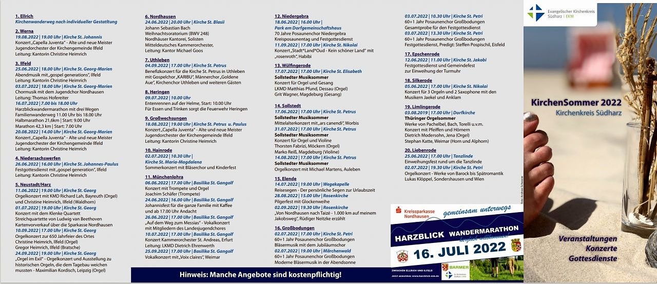 (re) Da ist ganz schön was los im Kirchenkreis Südharz - Veranstaltungstitel, Art der Veranstaltung, Zeit und Ort finden Sie hier in den beiden pdf die zum Download bereitstehen.