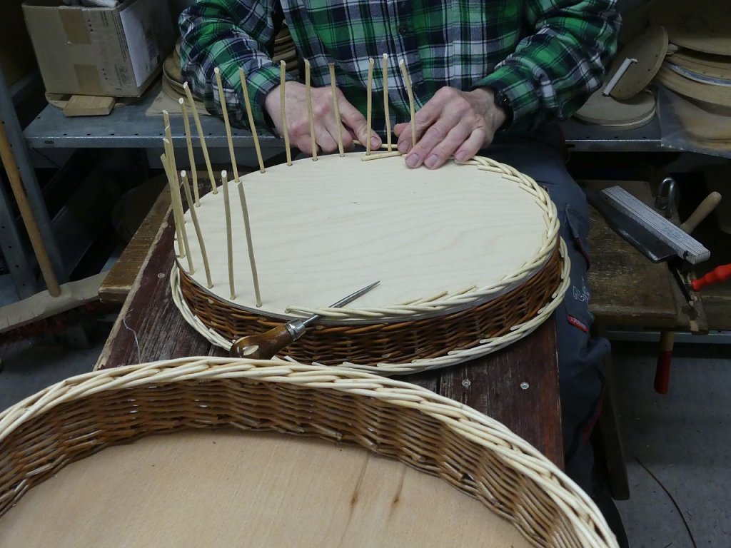 Mitarbeitende und Beschäftigte päsentieren die Verarbeitung des nachhaltigen Rohstoffs Weide. Vom Anbau der Pflanzen bis zum fertigen Produkt wird hier alles in Handarbeit vor Ort erledigt. Am Tag der offenen Tür können die Gäste entdecken, welche vielfältigen Produkte dabei entstehen können.