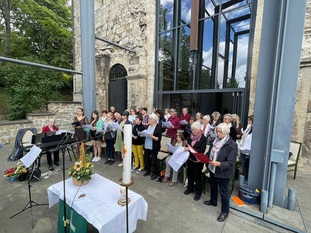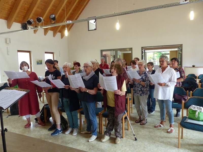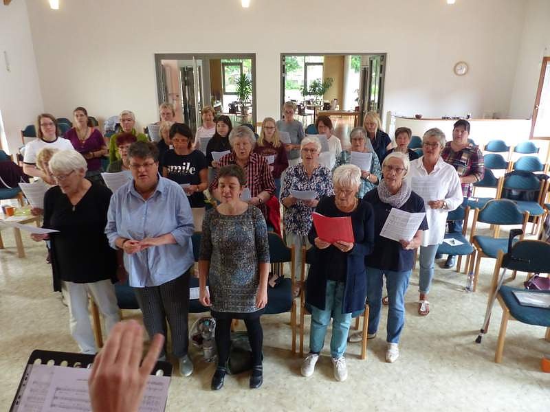 (re) Nach nur einem Probenwochenende gestaltet der 1. FC Südharz mit Kantorin Viola Kremzow den Gottesdienst an der Frauenbergkirche mit. Einfach Großartig - rund 30 Frauen aus dem ganzen Kirchenkreis sind dafür zusammengekommen.
