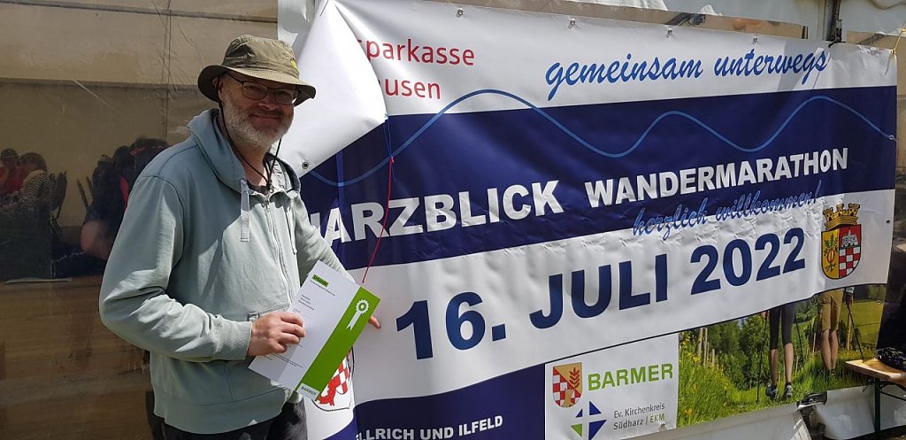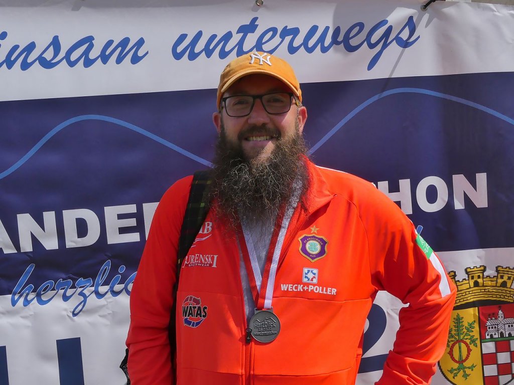 Tomás Camangnira aus Walkenried - der erste bei den Wandermarathonies, der nicht gelaufen, sondern gewandert ist - er kam als Dritter ins Ziel. (Foto: R. Englert)