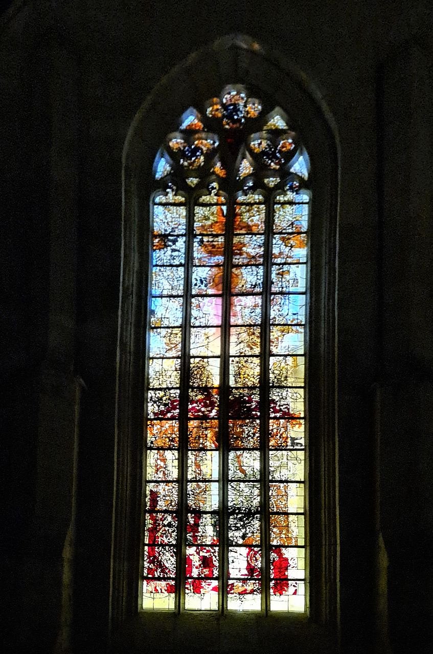 Seit 2021 ziert den Ostgiebel der St.-Marien-Kirche zu Bleicherode das neu gestaltete, große, gotische Fenster.