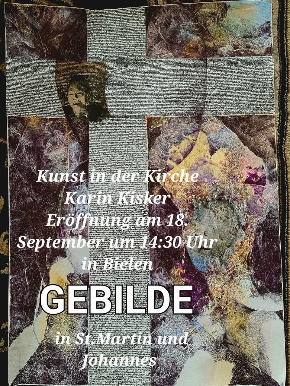 Plakat (Foto: Karin Kisker)Herzliche Einladung am 14. Sonntag nach Trinitatis, dem 18.09.2022 um 14:30 Uhr zur Vernissage der Ausstellung Gebilde von Künstlerin Karin Kisker in die St. Martin- und Johanneskirche Bielen.