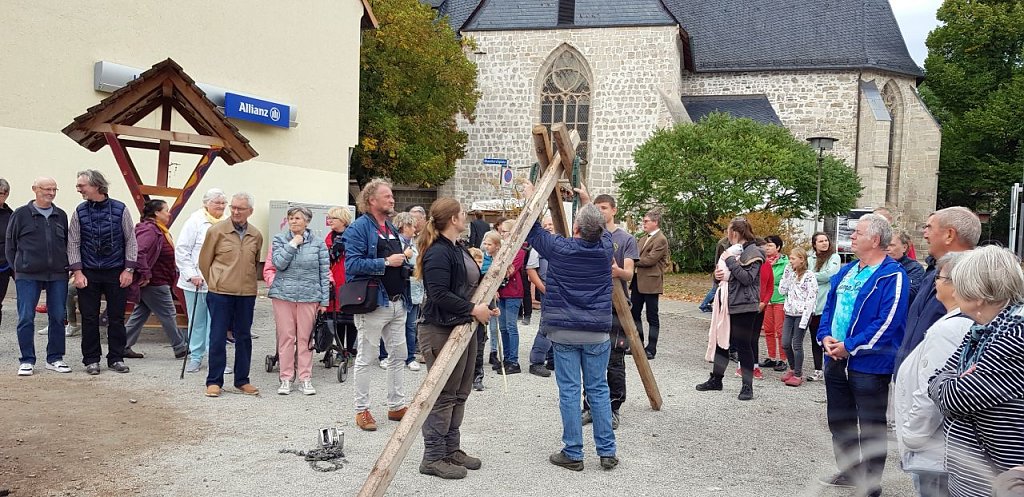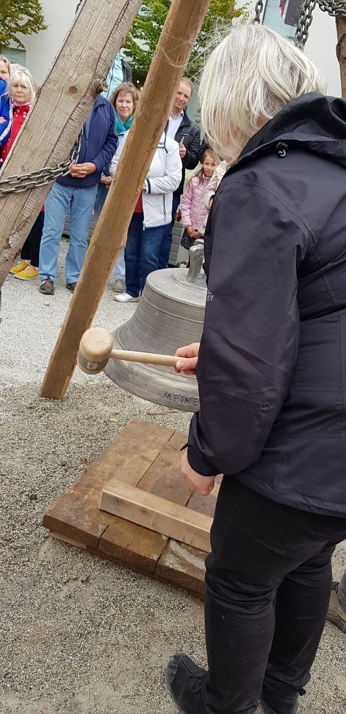Bei der letzten Glockenstuhlsanierung konnte zwar viel Geld in kurzer Zeit gesammelt werden, doch es reichte nicht, um eben diese Glocke aus dem Helm, in den Glockenstuhl zu den anderen zu transportieren und eine neue Uhrschlagglocke als Ersatz zu gießen. Umso schöner sei es, dass es jetzt so weit sei und dieser Abschnitt abgeschlossen werden könne, freut sich die Pfarrerin. Die derzeitige Uhrschlagglocke ist sehr wertvoll, erzählt Barbara Losche begeistert und ist froh, dass sie ins Geläut aufgenommen wird. Auf ihr finden sich acht Pilgerzeichen, so, wie es sie aus der Wallfahrtszeit der Rosenkirche in Elende auch gibt. Für uns als Gemeinde hat der Glockenguss eine große Bedeutung. Mit dieser Glocke und der Umhängung der anderen ist wieder eine lange Geschichte zu Ende gebracht worden, erklärt die Pfarrerin und lädt herzlich zu den letztlich drei besonderen Tagen ein.