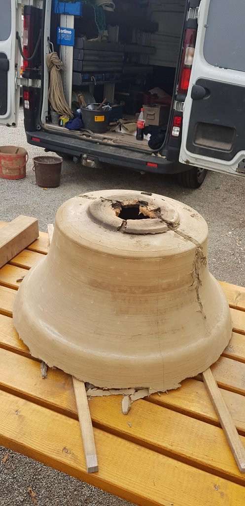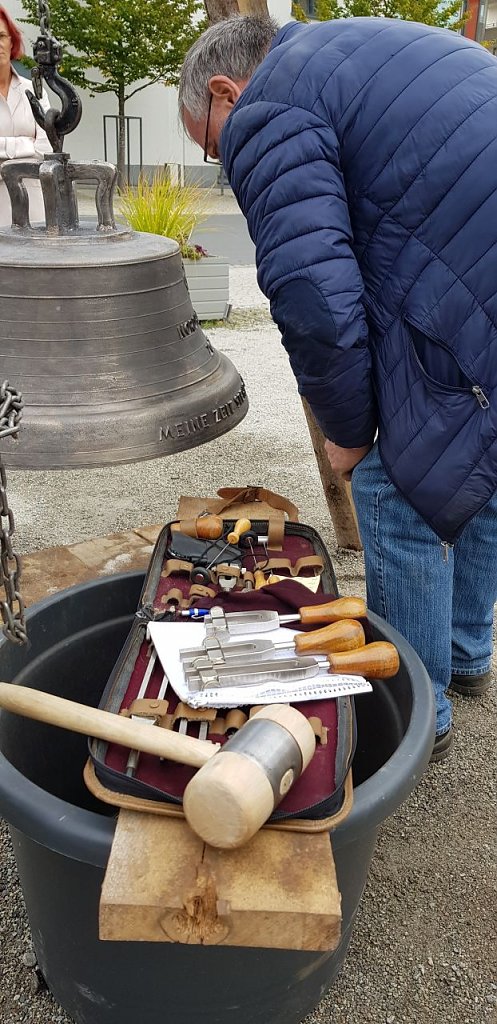 Mit dem Neuguss ändert sich auch die Anordnung im Glockenstuhl hoch oben im Turm – die Lücke wird geschlossen. Eigentlich sei die derzeitige Uhrschlagglocke eine Läuteglocke, sagt Christoph Schulz, Glockensachverständiger der EKM. Ihre Machart ist für eine Uhrschlagglocke sehr aufwendig. So freihängend im Turmhelm ist sie Wind und Wetter stark ausgesetzt, im Glockenstuhl hängt sie geschützter. Mehr dazu wird sicherlich bei seinem Vortrag am 26. September zu hören sein.