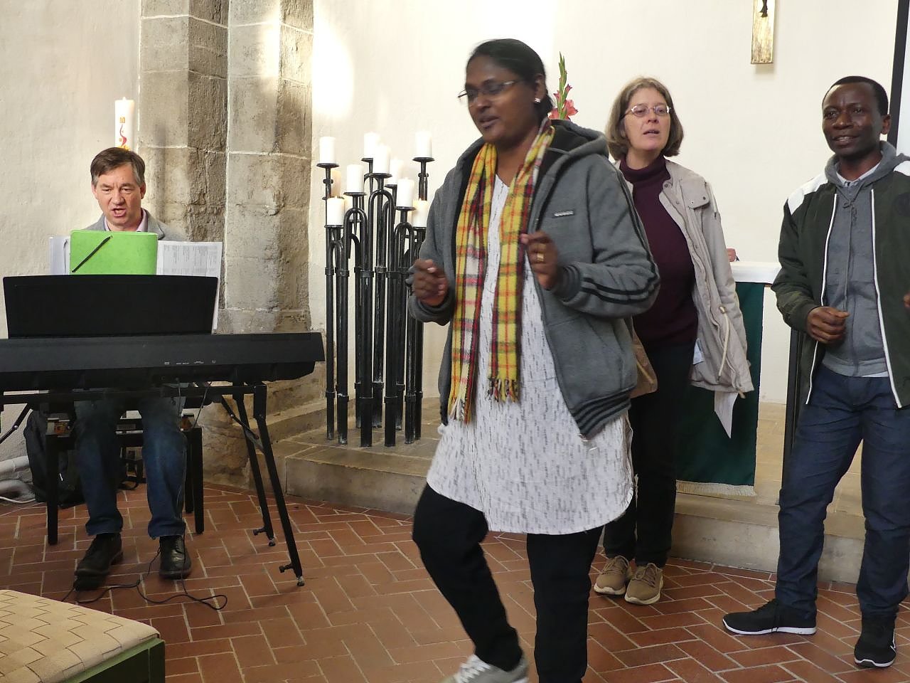 (re) Stop talking, immediately start acting – hört auf zu reden, fangt jetzt sofort an zu handeln, diesen Apell gibt Luka Ngongomi am Montagabend in der Frauenbergkirche den Zuhörenden eindringlich mit auf den Weg. Er kommt aus Tansania, ist Evangelist in der Evangelical Lutheran Church in Tanzania, (ELCT), Lehrer für Naturwissenschaften, Direktor einer Secondary School, die von der Kirche getragen wird, und Umweltaktivist. Vor diesem Hintergrund blickt er auf den Klimawandel und die großen Themen der Kirche in der Welt. Am Abend ist er zudem einer der vier Gäste, die im Auftrag des Leipziger Missionswerkes von der 11. Vollversammlung des Ökumenischen Rates der Kirchen in Karlsruhe berichten werden. An seiner Seite die indische Pfarrerin Prasanna Mercybai von der Tamil Evangelical Lutheran Church, der Naumburger Domkantor Jan-Martin Drafehn und Pfarrerin Bettina Plötner-Walter aus dem Kirchenkreis Naumburg-Zeitz. Die Vier zeigen Bilder und berichten von der zurückliegenden Vollversammlung, die sie als Gäste besuchen durften. Sie singen und tanzen am Montagabend schwungvoll in der Frauenbergkirche in Nordhausen zu den Liedern der Morgengebete aus Karlsruhe. Mit ihnen swingen auf ihren Plätzen einige städtische Gemeindeglieder, samt Pfarrehepaar von Biela, Pfarrer Hänel und als Moderator Superintendent Andreas Schwarze. Nur der Initiator des Treffens, Pfarrer Hauke Meinhold, kann aus gesundheitlichen Gründen nicht dabei sein. Da der Abend gleichzeitig die Eröffnung der Allianzgebetswoche ist, finden sich auch interessierte Mitglieder der baptistischen und der neuapostolischen Gemeinde, der Adventisten und der Landeskirchlichen Gemeinschaft Nordhausens ein. Und nicht nur Luka Ngongomi rüttelt sie auf. Interessant für uns in Deutschland dürfte die Erkenntnis des Kantors sein: Vieles, was uns immens wichtig erscheint, ist für andere Nationen und Kirchen `euer europäisches Problem´. Da muss man aushalten, dass im verabschiedeten Friedenspapier das Wort Ukraine nicht einmal vorkommt. Das zu lesen, fällt mir schwer, gibt Bettina Plötner-Walter zu. Wenn man die ganze Welt auf solch einer Vollversammlung vereint habe, stünden andere Themen oben an, sagt sie. Krieg gehört dabei in viel zu vielen Regionen dieser Welt zum Alltag. (Und man muss wohl auch aushalten, dass Kompromisse gefunden werden müssen, die dann in unseren Ohren sehr weichgespült klingen. - Anmerkung der Redaktion)