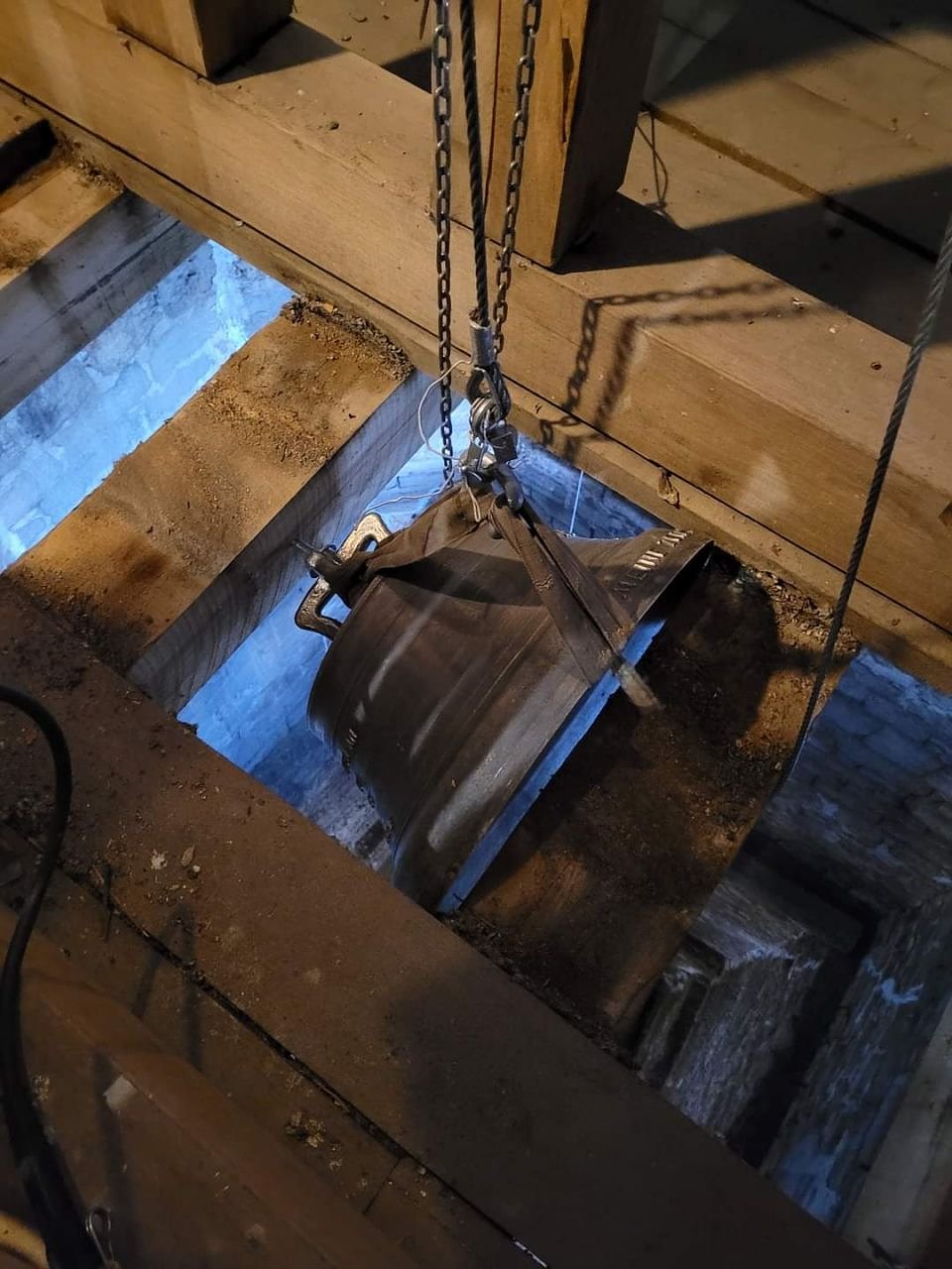 Uhrschlagglocke von Blasii unterwegs in den Turm