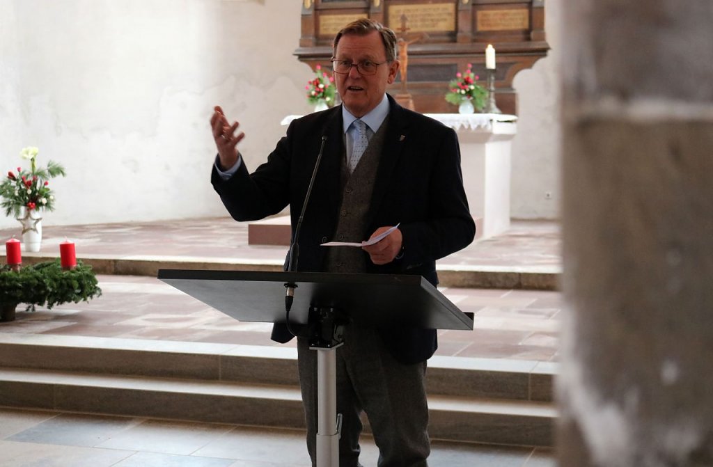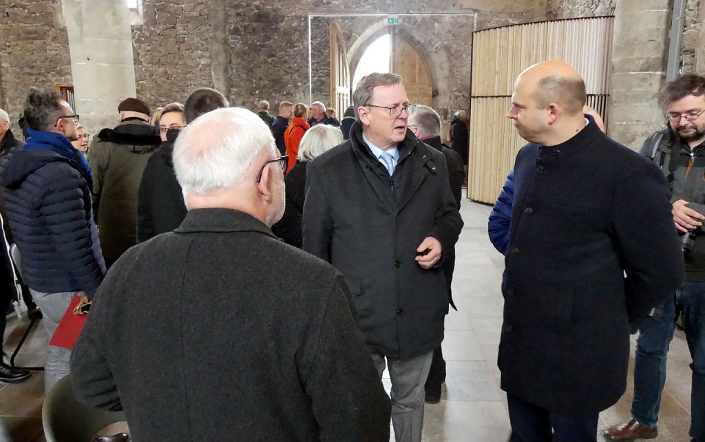 Die größte Überraschung des Tages hatte aber wohl der zweite Beigeordnete des Landkreises Nordhausen, Dirk Schimm, im Gepäck. Er brachte die Baugenehmigung für die beiden Türme der Kirche als Geschenk mit. Sie sind die große Wunde, die die Ellricher besonders schmerzt, wegen derer sie mit Ramelow damals Kontakt aufnahmen. In der einstigen Grenzregion hatte man die weithin sichtbaren Türme zu DDR-Zeiten abgerissen. Doch die Ellricher haben eine ungeahnte Zähigkeit bewiesen und Menschen für den Wiederaufbau begeistern können - unter ihnen auch den Ministerpräsidenten des Freistaates. Im Juni 2021 überbrachte er den Förderbescheid über 3,1 Millionen aus dem Sondervermögen der Parteien und Massenorganisationen der DDR - welch eine Ironie der Geschichte.