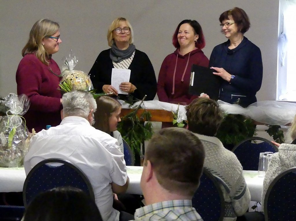 Petra Seipelt-Bösenberg bittet ihre Seelsorgerin zum Abschied: Lassen Sie sich nicht verbiegen, bleiben Sie, wie Sie sind! Bei diesen Worten rollen erste Tränen im Festsaal, nicht nur bei der Vorsitzenden. Erst 2016 sind ihre Gemeinden Wolkramshausen-Wernrode sowie Kleinfurra-Hain dem Pfarrbereich zugeordnet worden. Dass man es Dorothea Heizmann nicht immer leicht gemacht habe, sind sich die Vorsitzenden einig. Seipelt-Bösenberg nennt ihre Gemeinden zu Beginn der Zusammenarbeit bockig und Wilke spricht von Ehepartnern, die sich zusammenfinden mussten, schließlich seien sie die Angeheirateten. Doch Heizmanns klar strukturierte, offene und bestimmende Art habe letztlich alles zusammengefügt, da herrscht Einigkeit.