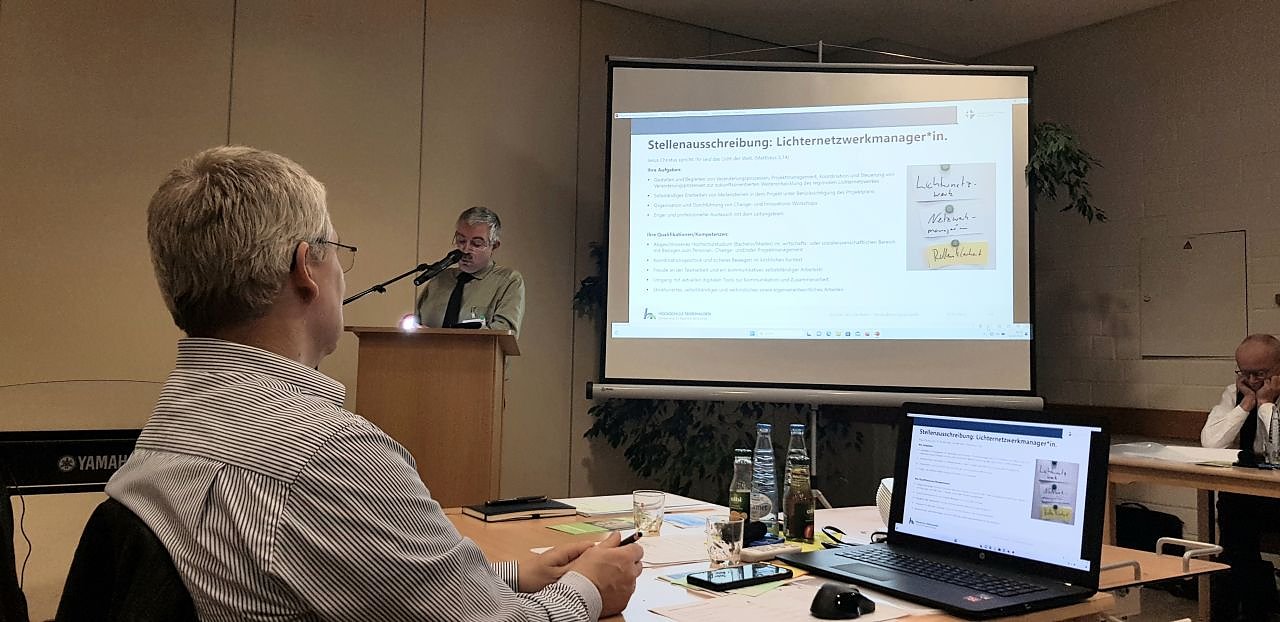 Das Risiko will man nun eingehen, die Stelle eines Lichternetzwerk-Managers ist geschaffen worden. Mit 100%-Stellenumfang, zunächst für 6 Jahre befristet. Gesucht wird jemand, der oder die genau hinschaut, von außen auf die Regionen schaut, wo Gemeinden Unterstützung brauchen, wo Dinge bereits funktionieren und vielleicht besser vernetzt werden können. Entstanden ist die Idee aus der Zusammenarbeit des Leitungskreises des Kirchenkreises Südharz mit Prof. Dr. Steffen Dörhöfer vom Fachbereich Innovations- und Changemanagement der Hochschule Nordhausen. Diese Lenkungsgruppe besteht aus den Vorsitzenden aller Ausschüsse des Kirchenkreises, samt Superintendent und Präses Dr. Uwe Krieger.