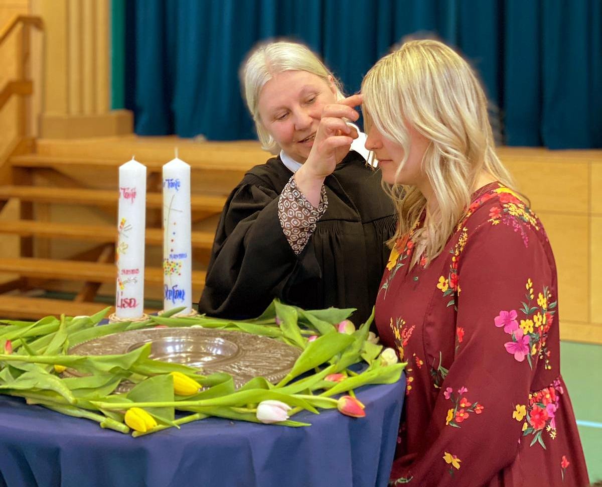 Täufling Stefan Fienhold sagte, dass er sich seit Beginn seiner Lehrtätigkeit an der Evangelischen Grundschule intensiv mit christlichen Glauben und der Taufe auseinander gesetzt habe und die Rituale, Werte und den Alltag in der Evangelischen Schulgemeinschaft lieben und schätzen gelernt habe: Für mich ist es wichtig, ein Teil der evangelischen Gemeinschaft zu sein so Fienhold und dazu gehöre für ihn auch das öffentliche Bekenntnis zu Gott und die Taufe als sichtbares Zeichen der Zugehörigkeit zur Gemeinschaft der Christinnen und Christen.