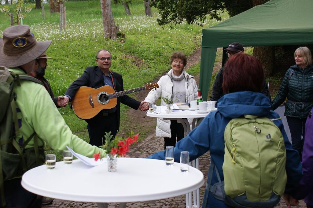 Am nächsten Tag im Park Hohenrode wurden alle von Gisela Hartmann mit Mai-Bowle begrüßt und von Jochen Lenz mit Gottes gutem Segen auf die Reise geschickt.