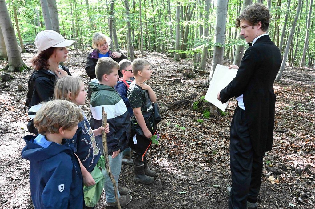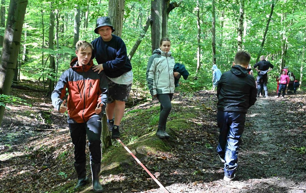 Auch wir gehen heute Wege. Das Geländespiel startet pünktlich als die letzte Regenwolke sich verzogen hat. Es geht bergauf, bergab über Stock und Stein und manche Aufgabe muss gemeistert werden um möglichst viele Wimpel für den Empfang Maria Montessoris in New York, für ihre Vortragsreise zu sammeln.