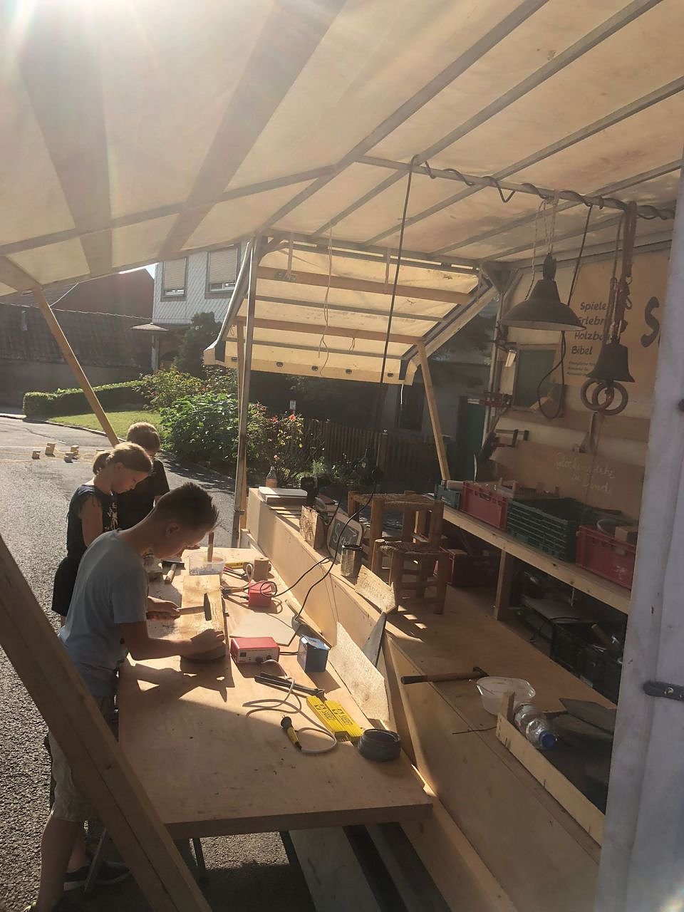 Es gab also viel zu sehen an diesem besonderen Tag in dem kleinen Dorf - Interessierte stiegen zur neuen Glocke und alten Turmuhr auf, sahen sich den Film vom Glockenguss an oder genossen die leckere Erbsensuppe der FFW Obergebra mit Blick auf die Kinder, die sich in der SpielWerkstatt mit Hammer, Brennkolben und Straßenkreide oder an der Murmelbahn amüsierten.