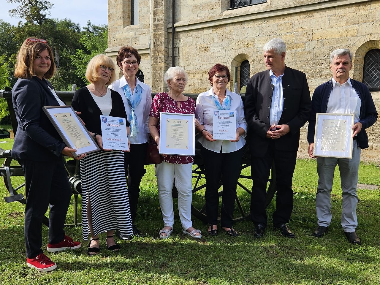(re) Während des Benefizkonzerts am Sonntag in St. Elisabeth wurden einige Ehrenamtliche ausgezeichnet, unter ihnen Helga Rathnau für ihr großes Engagement bei den Nordhäuser Tafeln. Sie erhielt mit dem Ehepaar Krischeu sowie Regina und Magnus Englert das Thüringer Ehrenamtszertifikat auf Antrag des Kirchenbauvereins Wülfingerode e.V.. Und auch der Kirchenbauverein selbst ehrte Sigrid Kopf, Eberhard Belz, Nicole Pfützenreuter und Heidi Albrecht für ihren ehrenamtlichen Einsatz.