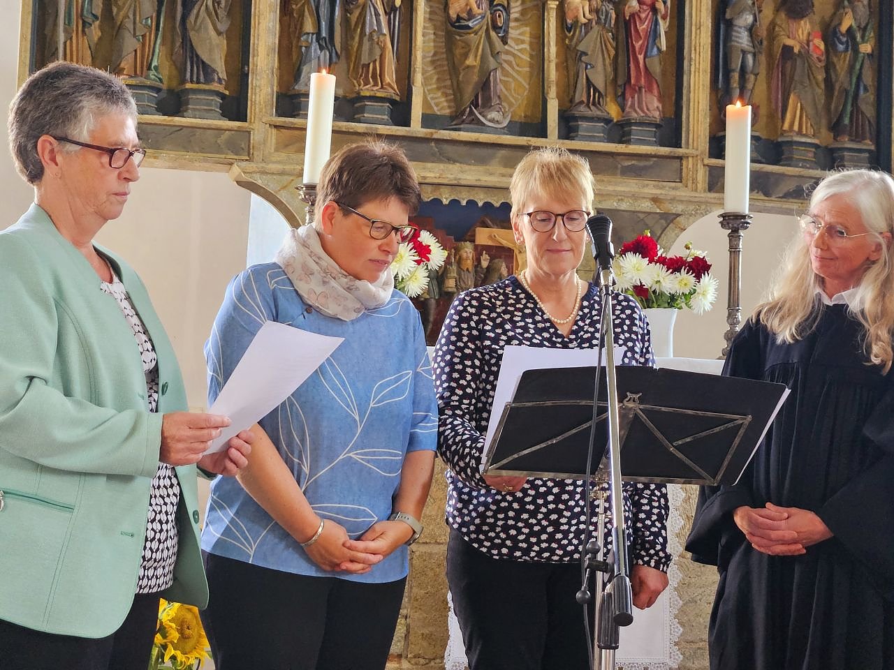 Es ist ein herzliches Willkommen in Pustleben, das die Gemeinden Marina Mönnich schenken, mit Chorgesang und kleinen Aufmerksamkeiten. Und sie selbst bedankt dafür sich mit einem strahlenden Lächeln und guten Worten für die Gemeindeglieder und aktiven Ehrenamtlichen sowie einem Geburtstagsstrauß für das Gemeindekirchenratsmitglied Frau Wilke.