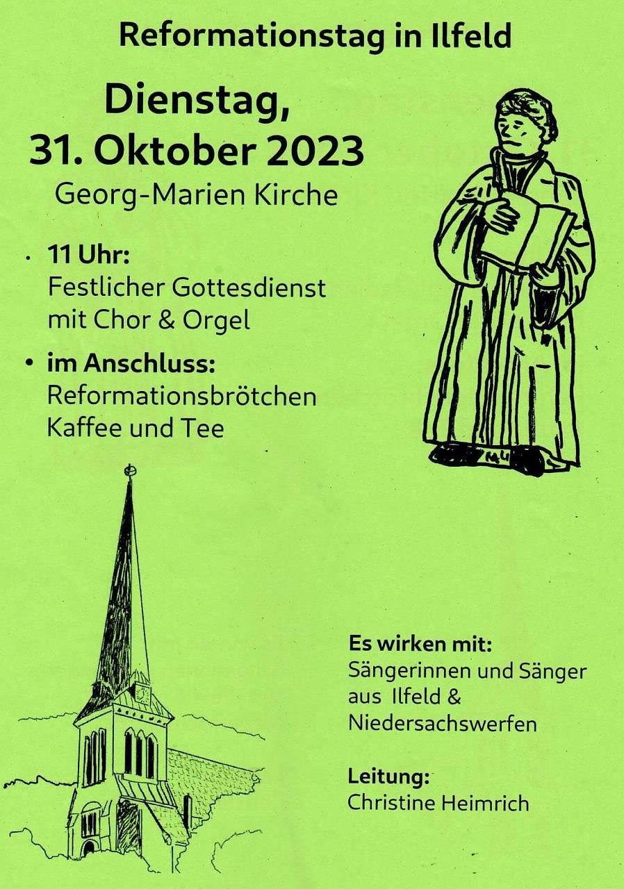 Zum Gottesdienst mit Chor und Orgel wir am 31.Oktober um 11 Uhr in die Georg-Marien-Kirche Ilfeld eingeladen.