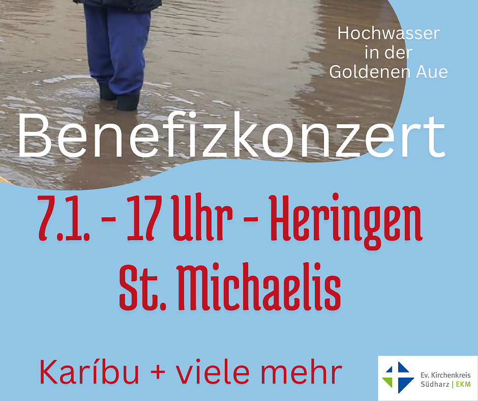 Am 7. Januar um 17 Uhr singen etliche Chöre der Region in Heringen in der St.-Michaelis-Kirche gemeinsam für die Opfer des Hochwassers in der Goldenen Aue. Neben Karíbu, dem Gospelchor des Kirchenkreises, werden Gospel Generations aus Ilfeld mit Kreiskantorin Christine Heimrich und das Nordhäuser Frauenquintett dabei sein, zudem der Heringer Kirchenchor und Rhythmus 22 mit Sängerinnen und Sängern aus Görsbach, Urbach, Leimbach und Bösenrode sowie Thomas Hofereiter mit Mitgliedern des Jugend- und des Kammerchores Nordhausen.