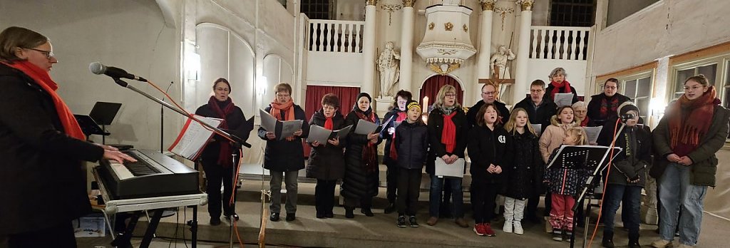 (re) Was für ein Abend – Freundinnen und Freunde in der Not stehen zusammen – sie singen und swingen in Heringen und Bleicherode im Kirchenkreis Südharz zugunsten der Betroffenen des Hochwassers in der Goldenen Aue. Nach dem Lichter-Gottesdienst meldet der Vorsitzende des Gemeindekirchenrates Dr. Christoph Maletz aus Bleicherode eine Spendensumme von 837,58 Euro. Kantorin Viola Kremzow darf das Ergebnis des Heringer Benefizkonzerts verkünden: 7.347,50 Euro. Somit konnten am Sonntagabend rund 8.185 Euro im Kirchenkreis Südharz an Spenden gesammelt werden.