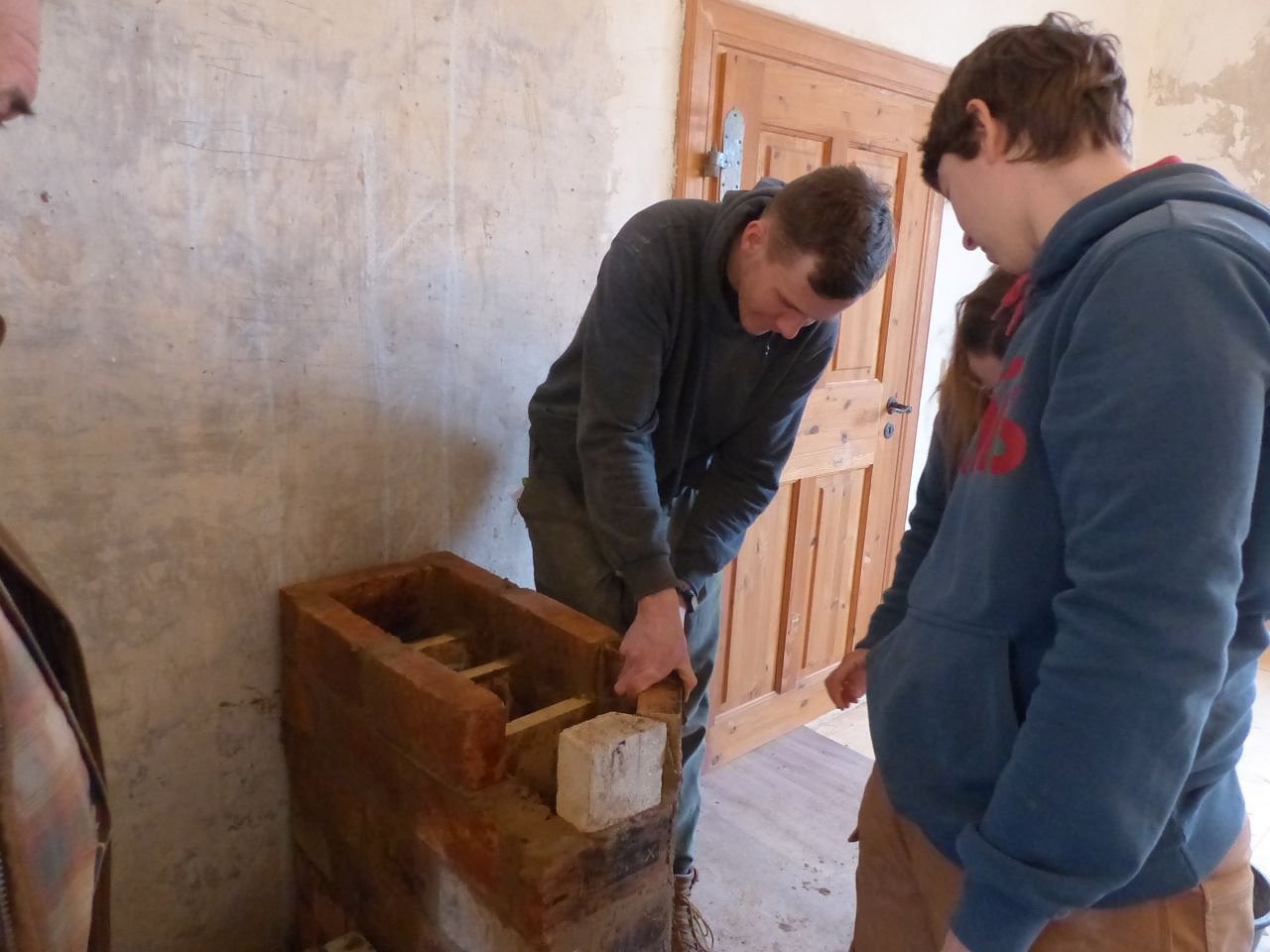 beim Setzen der Schamottsteine (Foto: Ulrike Patzelt)