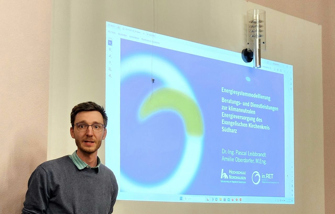 Dr.-Ing. Pascal Leibbrandt, Wissenschaftler an der Hochschule Nordhausen, stellte den Anwesenden dazu eine mögliche Energiesystemmodellierung vor. Sie beinhaltet ein ganzes Leistungspaket auf dem Weg zu einer klimaneutralen Energieversorgung des Kirchenkreises Südharz. Im Rahmen der Beratung werden die kirchlichen Gebäude in Gruppen eingeteilt. Dazu betrachtet man beispielsweise den baulichen Zustand, Gebäudestandort,